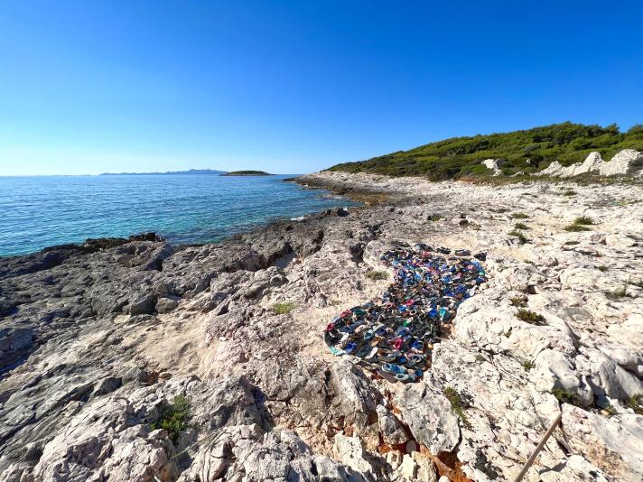 Κατά τη διάρκεια διακοπών με την οικογένειά της, η Nika καθάριζε καθημερινά μια παραλία γεμάτη πλαστικά. Από τα 400 παλιά παπούτσια που συγκέντρωσε, δημιούργησε ένα τεράστιο ανθρώπινο αποτύπωμα στην άμμο — σύμβολο της ανθρώπινης επίδρασης στη φύση και της ανάγκης για αλλαγή.