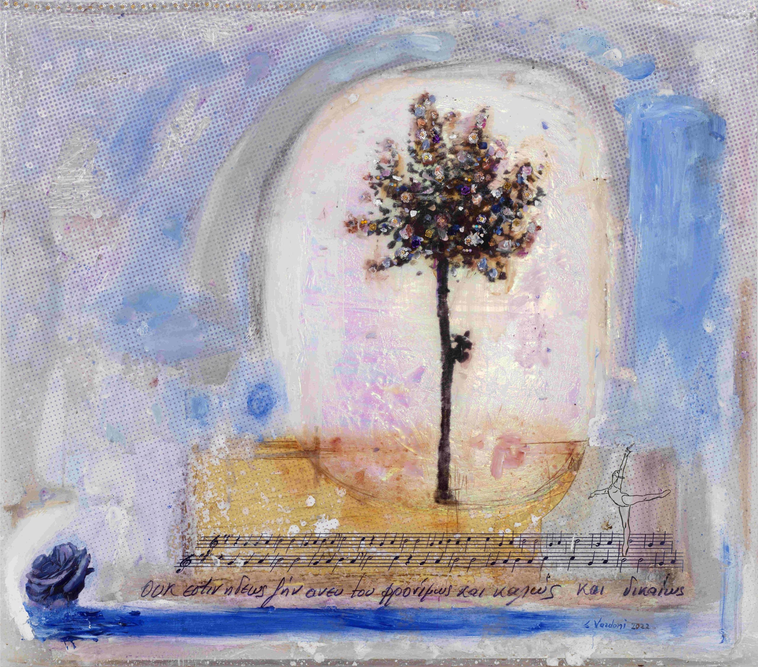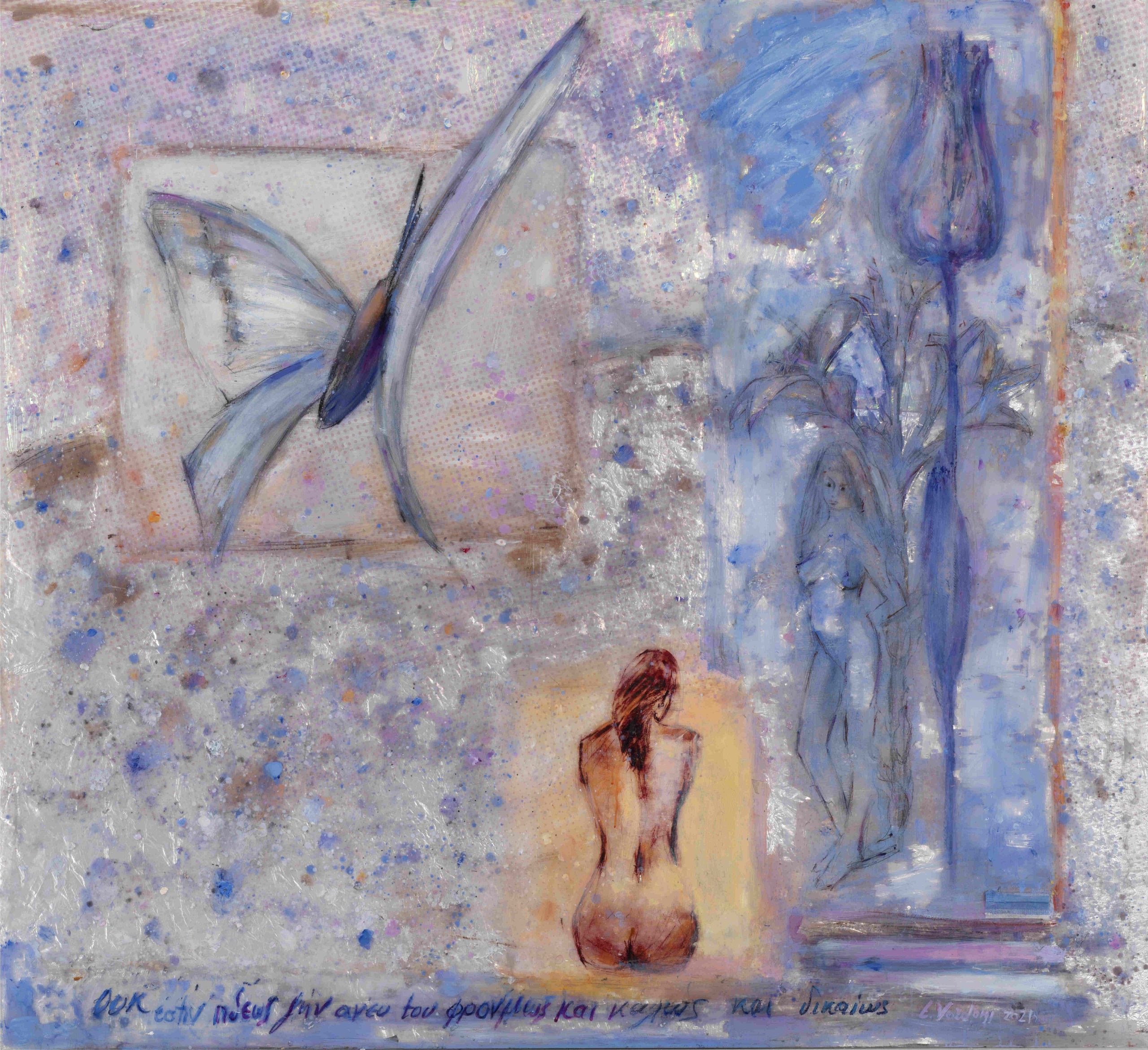 (ο κήπος του Επίκουρου) με τεχνοτροπία δική της, καθαρά προσωπική αντισυμβατική και παιγνιώδη. Τέλος, αν θα θέλαμε να συνοδέψουμε τα έργα της με μουσική, νομίζω πως ο Igor Stravinsky θα ήταν ιδανικός: πολύμορφος εικονοποιός του υποσυνείδητου», καταλήγει ο Χριστόφορος Χριστοφής.