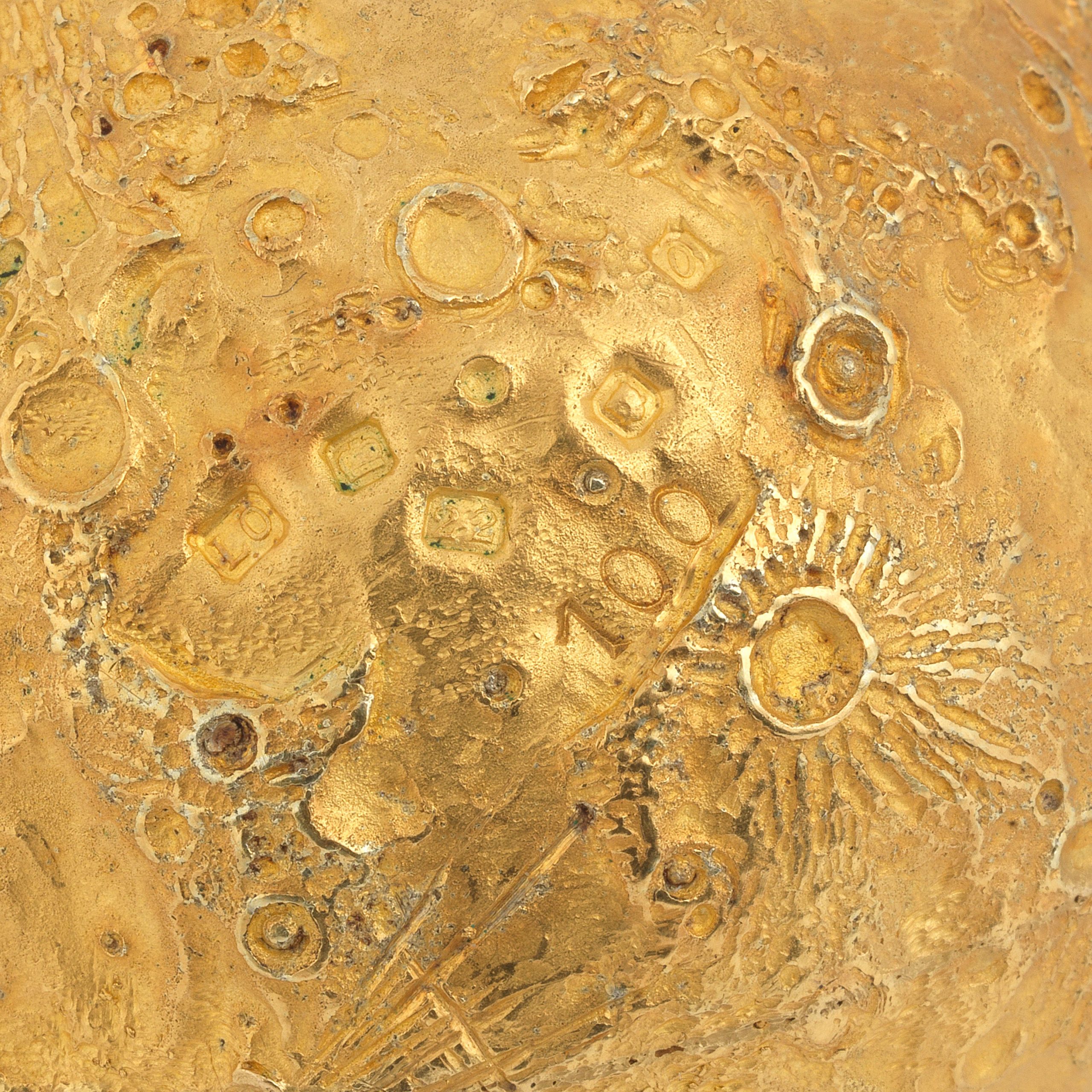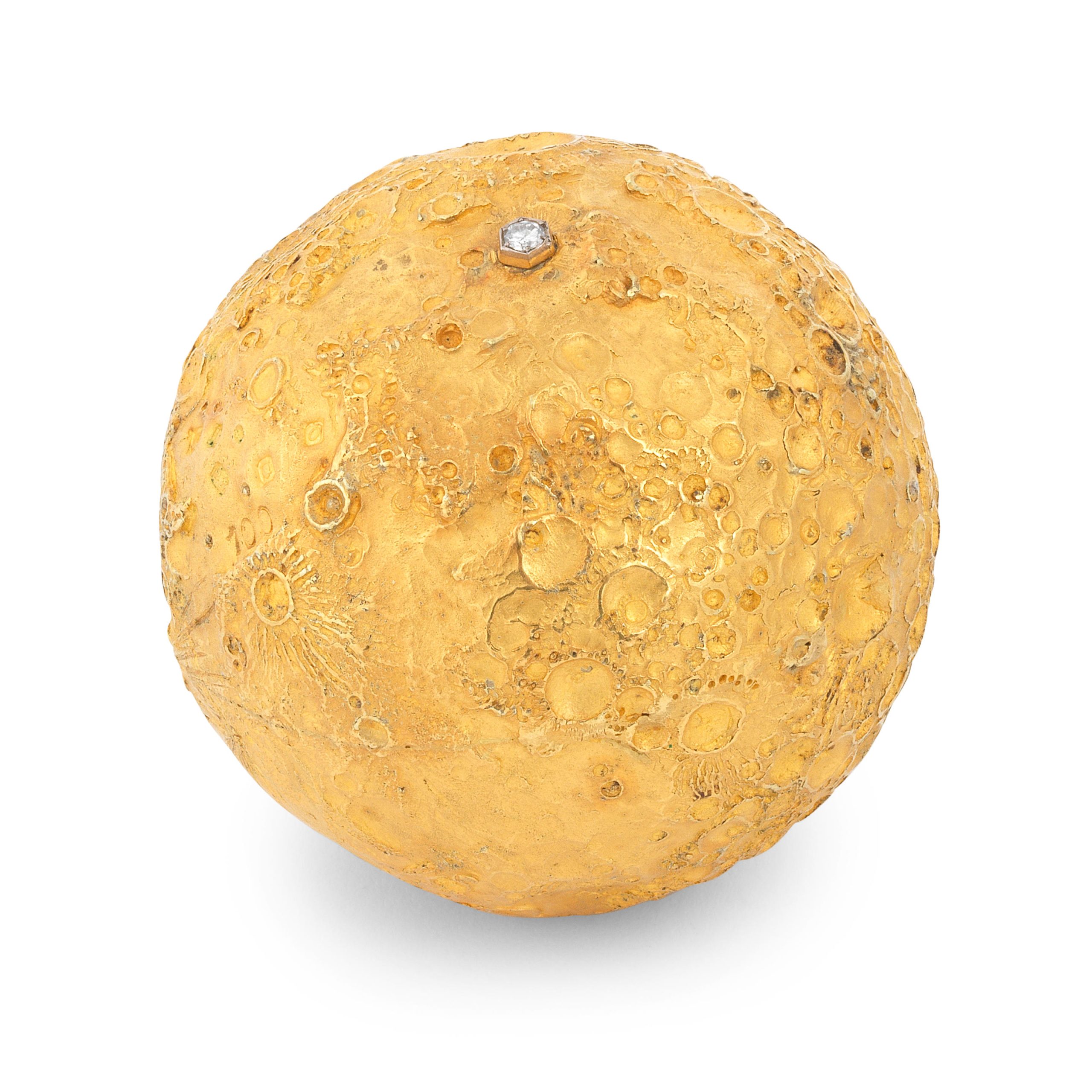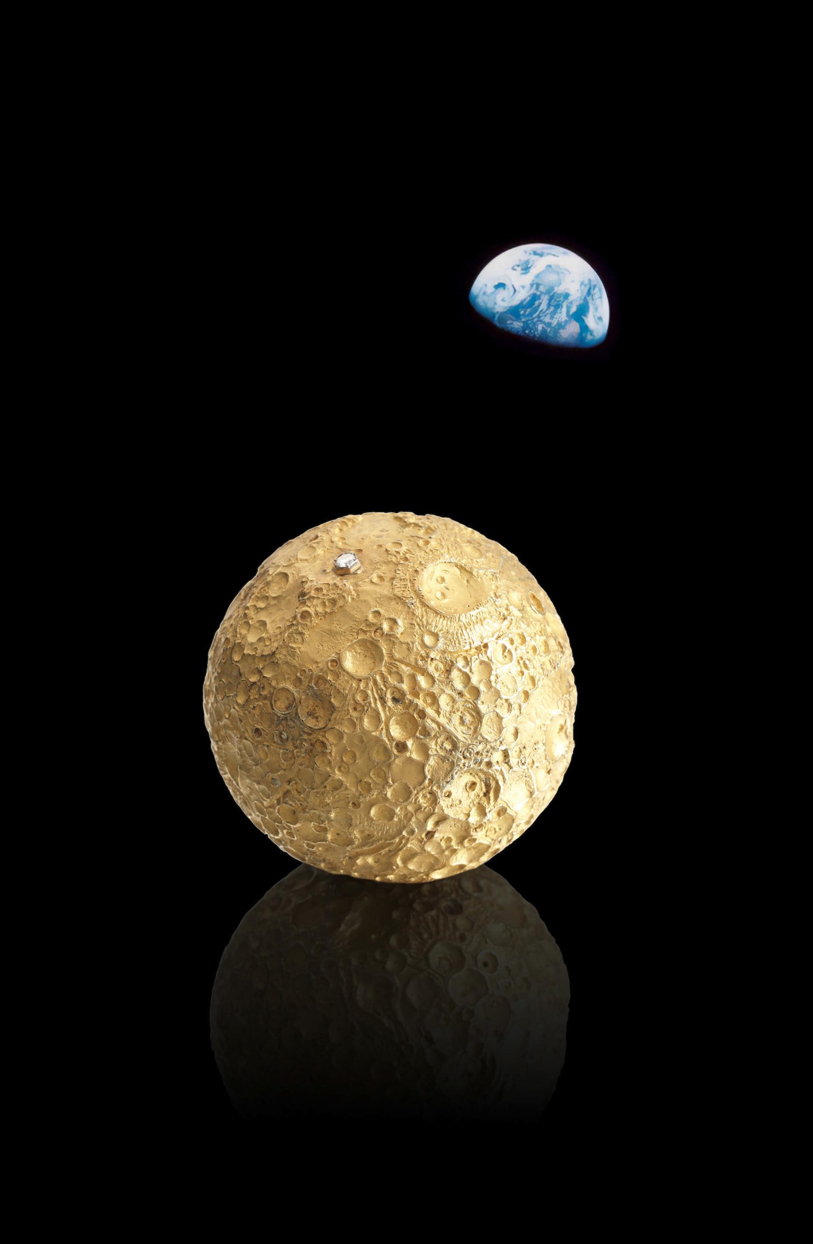 Ένα εντυπωσιακό και απόλυτα λεπτομερές γλυπτό, κατασκευασμένο από χρυσό 22 cts και διακοσμημένο με ένα διαμάντι, αποτίει φόρο τιμής στη διαστημική αποστολή του Apollo 11 και στην επιτυχημένη προσελήνωσή του το 1969. Ένα γεγονός κοσμοϊστορικό που σηματοδότησε την παρθενική παρουσία του ανθρώπου στον φυσικό μας δορυφόρο.
