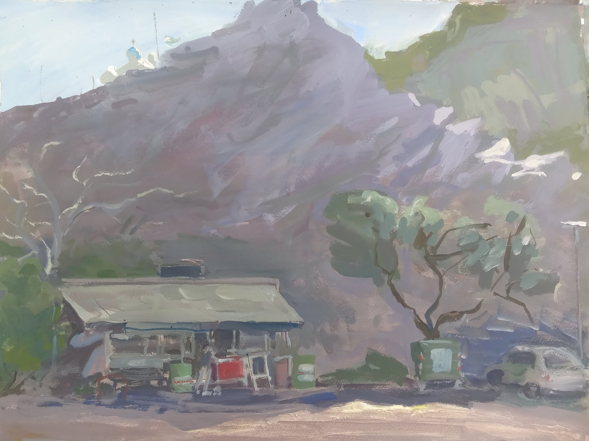 “αὐτὸ εἶναι τὸ τελευταῖο ἔργο στὶς Μαρίκες. 24 Ὀκτωβρίου. Ἡμέρα τῶν γενεθλίων μου. Ὅλα ξεκίνησαν θετικὰ ἀπὸ νωρίς. Μπήκαμε στὴ θάλασσα . . . ἡρωικά. ἡ θερμοκρασία ἀκόμα ἀνεκτή. Οἱ τελευταίοι πιστοὶ τῆς παραλίας σχολίαζαν, “μπῆκε”! Εἶχε ἥλιο τὸ πρωί φθινοπωρινό μὲ λίγα σύννεφα. Ἀφοῦ βγῆκα ἀπ’ τὸ νερὸ διάλεξα νὰ δουλέψω στὸ ἐπίπεδο τῆς ἄμμου πίσω ἀπὸ ἕναν ἀμμόλοφο ἀλλὰ βλέποντας πρὸς τὸ λευκὸ σπίτι καὶ τὰ δέντρα. Τὰ φῶτα ἦταν καθαρά καὶ πίσω στὸν οὐρανὸ ἐμφανίζονταν πλούσια σύννεφα σὲ κίνηση. Λέω: λουκούμι τὸ θέμα! καὶ πράγματι ζωγραφίζοντας ἔνιωθα πὼς θὰ εἶναι μιὰ ἐξαιρετικὴ ζωγραφιά. φούσκωνε τὸ στῆθος μου. τὸ ἔνιωθα πράγματι! Βιαζόμουν ταυτοχρόνως νὰ κρατήσω τὸ αἴσθημα καὶ νὰ ὁλοκληρώσω τὴν σημείωση. Τὸ σύννεφο ὅμως ἐρχόταν ταχύτατα κι ἄρχισε νὰ ψιχαλίζει. ἡ θερμοκρασία ἔπεσε ἀπότομα. τώρα τουρτούριζα ἀπὸ τὸ κρύο καὶ βρεγμένος καθὼς ἤμουν δὲν ἀσχολιόμουν πιὰ μὲ τὸ παρὰ τρίχα ἐπιτυχημένο ἔργο. Ἤμουν μέσα στὸ κρύο, τὀ ‘νιωθα ἔντονα, τὸ ἔργο σχεδὸν χαμένο καὶ προσπαθοῦσα νὰ σώσω ὅτι μποροῦσα μέσα στὴ βροχή, πρᾶγμα ἄτοπο. Νὰ ὁμολογήσω ὅτι ξέφυγα λίγο λεκτικά γιατὶ ἦταν καὶ μέρα ποὺ ἤθελα ἕνα τρόπαιο! Τὸ ἔργο δὲν ὑπῆρχε, ὁ οὐρανὸς εἶχε σκοτεινιάσει καὶ ἡ Ἀγγελικὴ ἔφερνε βόλτα μὲ μιὰ ὁμάδα οἰκολόγων ποὺ εἶχε ἐκείνη τὴν ἡμέρα ξενάγηση στὸν βιότοπο. Ἡ βροχὴ σταμάτησε, νοτισμένα τὰ πάντα, φυσοῦσε. Γύρισα τὰ σύνεργα πρὸς τὴ θάλασσα καὶ μπῆκα σὲ ἐντελῶς ἄλλη κατάσταση. αὐτὴ ποὺ ἀκροβατεῖς σὲ τεντωμένο σχοινί καὶ τὰ παίζεις ὅλα γιὰ ὅλα. Δὲν σκέφτεσαι ποιότητες καὶ κόλπα τῆς ζωγραφικῆς ποὺ θὰ φουσκώσουν τὸ στῆθος σου. Τελειώνεις ἀβέβαιος καὶ μαζεύεις τὰ συμπράγκαλα σου. Μετὰ ἀπὸ μέρες λές. ἄ! ὡραῖο εἶναι τελικά. χμ! ναὶ! μ’ ἀρέσει πολύ!”