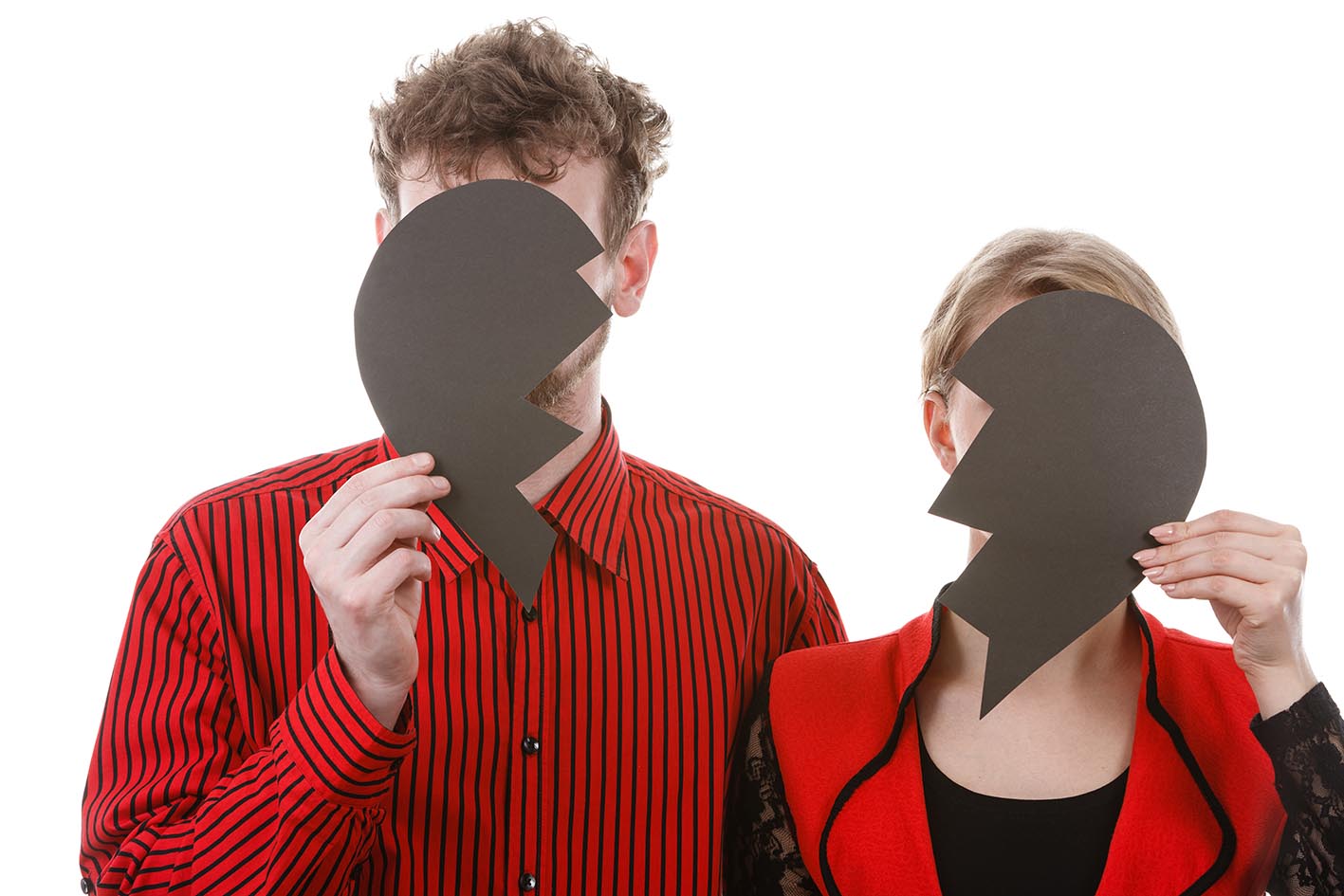 Ζευγάρι κρατά μπροστά τους μία καρδιά από χαρτί σχισμένη στα δύο