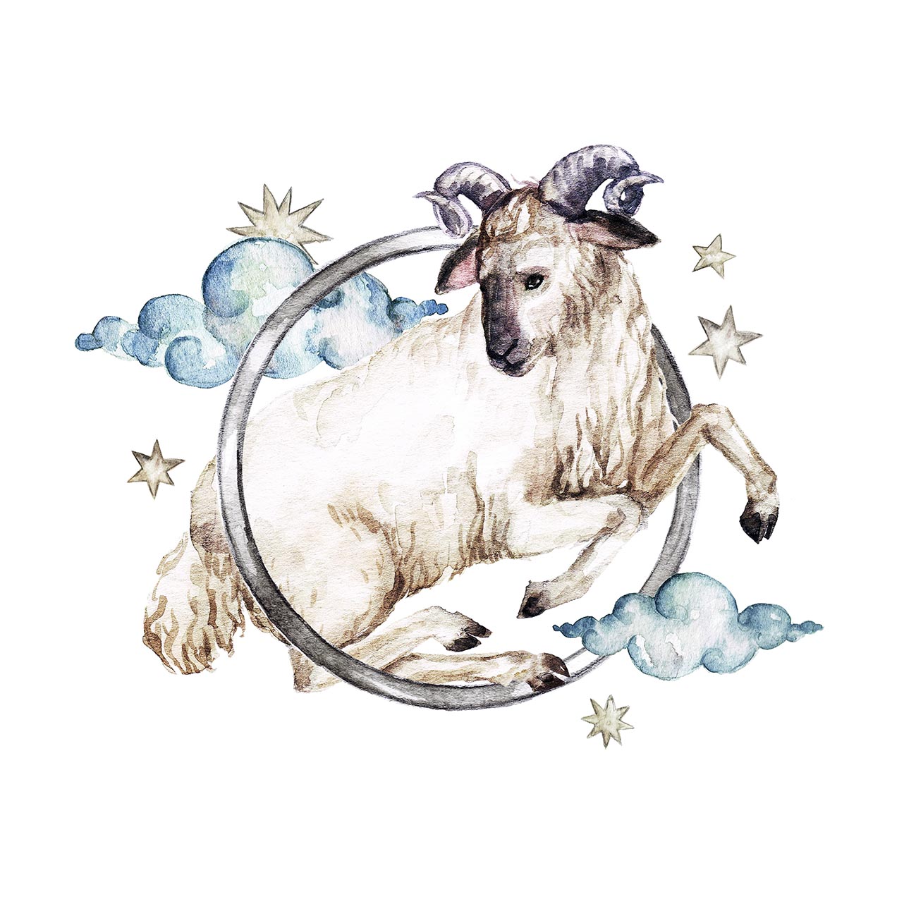 Ζωδιακές προβλέψεις. Το ζώδιο Κριός απεικόνιση σκίτσο. Γυναίκα
