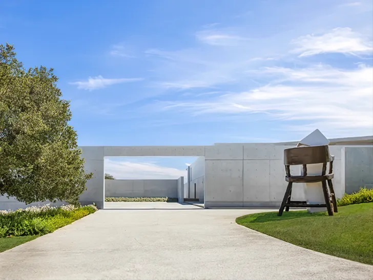 Με θέα στον Ειρηνικό Ωκεανό στο Paradise Cove, το σπίτι σχεδιάστηκε από τον βραβευμένο Ιάπωνο με Pritzker Tadao Ando, έναν από τους πιο γνωστούς αρχιτέκτονες στον κόσμο. Το σπίτι είναι σκαρφαλωμένο στην κορυφή των βράχων του Μαλιμπού. Ο συλλέκτης και πρώτος ιδιοκτήτης χρειάστηκε σχεδόν 15 χρόνια για να κατασκευάσει την έπαυλη από σκυρόδεμα –που αποτελεί και το βασικό υλικό της, του είχε δε στοιχίσει γύρω στα 100 εκατ. δολάρια.