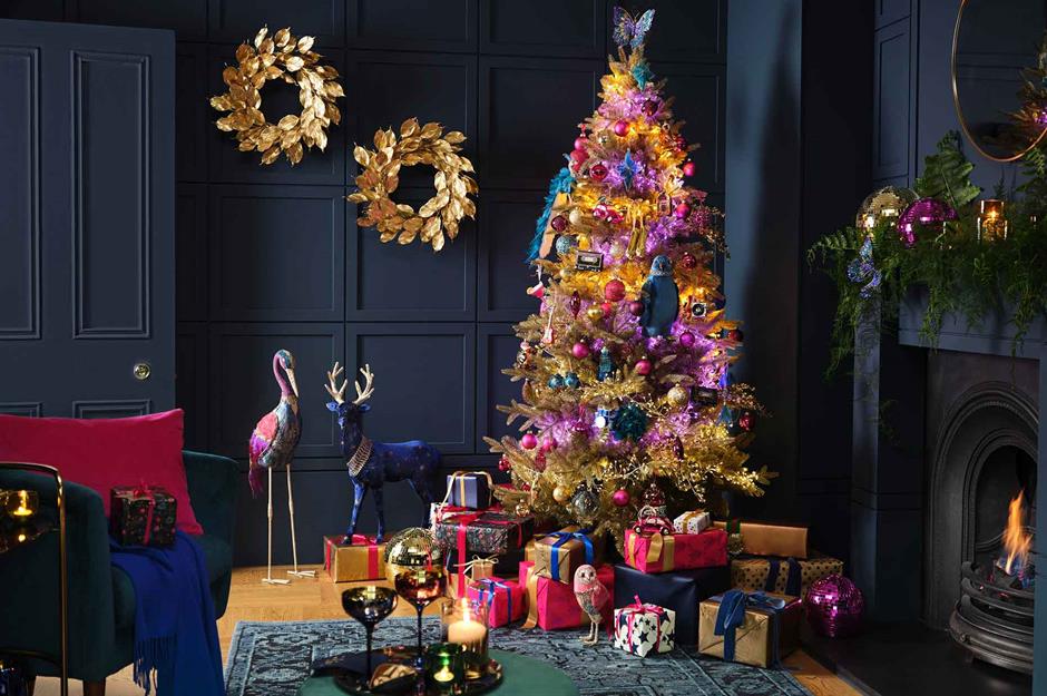 Τι θα λέγατε να αντικαταστήσετε το κλασικό πράσινο δέντρο σας με ένα υπέροχο χρυσό, που σίγουρα θα δώσει στο σπίτι σας λίγη χολιγουντιανή λάμψη. Στολίστε το αστραφτερό σας δέντρο με μερικά κομψά σκουρόχρωμα μπιχλιμπίδια σε δαμασκηνί, ναυτικό μπλε και μαύρο και φωτίστε με χρυσά νεραϊδάκια για την τέλεια εορταστική λάμψη που σίγουρα θα θαμπώσει φίλους και οικογένεια.