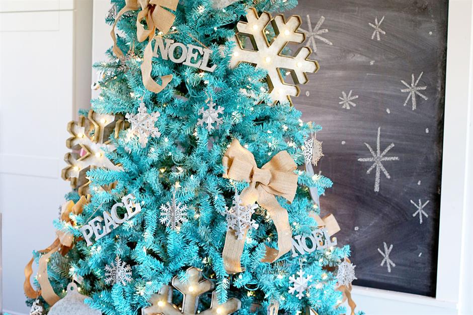Για ένα μοναδικό δέντρο, τι θα λέγατε να δημιουργήσετε το δικό σας εορταστικό αριστούργημα; Αποκτήστε ένα τεχνητό δέντρο και δώστε του τη δική σας, αγαπημένη απόχρωση, χρησιμοποιώντας έναν κατάλληλο ψεκαστήρα για να αποκτήσετε ομοιόμορφη επίστρωση. Μας αρέσει αυτή η ζωντανή τιρκουάζ απόχρωση της Sugar Bee Crafts, αλλά φροντίστε να ελέγξετε ξανά ότι το δέντρο είναι καλυμμένο. Αφού στεγνώσει το δέντρο σας, επιλέξτε μερικά ρουστίκ στολίδια σε ουδέτερες κρέμες και λευκά με λίγη ασημί λάμψη για λίγη γιορτινή διάθεση.
