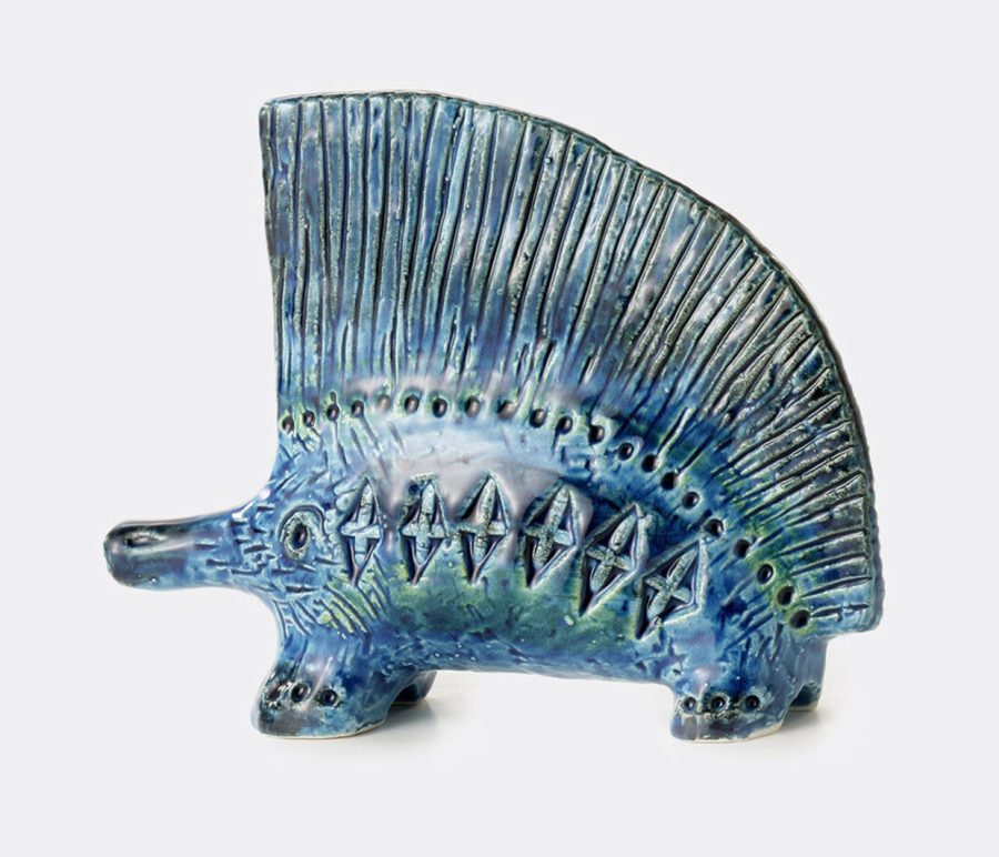 Ένα πρωτότυπο διακοσμητικό αντικείμενο από τον διάσημο Ιταλό κατασκευαστή Bitossi, αυτό το γλυπτό έχει δημιουργηθεί χρησιμοποιώντας την εξειδικευμένη δεξιοτεχνία της εταιρίας στην παραγωγή πήλινων σκευών. Το ειδώλιο του χοιρινού είναι μέρος της εμβληματικής συλλογής κεραμικών «Rimini Blu», που σχεδιάστηκε στις αρχές της δεκαετίας του ’50 από τον Aldo Londi. Αυτό το προϊόν είναι ένα μοναδικό κομμάτι χειροποίητο από τους τεχνίτες Bitossi Ceramiche.