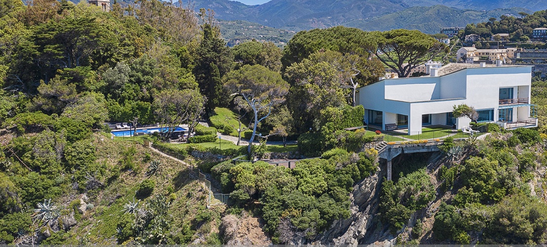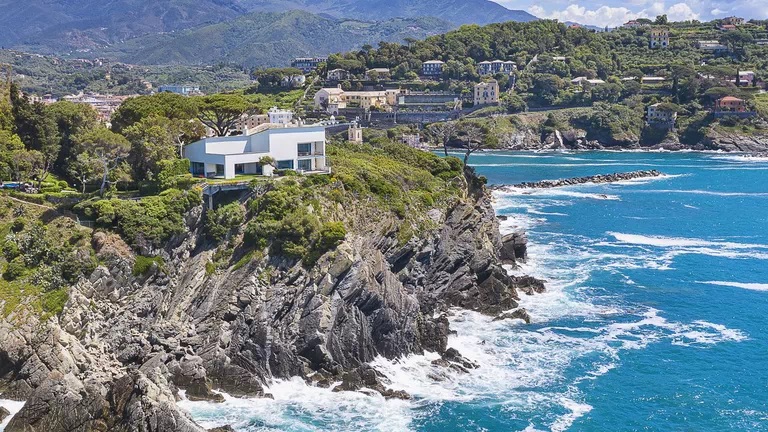 Ακριβώς εδώ λοιπόν, στην άκρη ενός απότομου βράχου, μόλις 15 χλμ από το Portofino και 25 χλμ από το Cinque Terre, ο αρχιτέκτονας Luigi Carlo Daneri, βασισμένος στo δημιουργικό ύφος του κορυφαίου Le Corbusier, σχεδίασε με μαθηματική συμμετρία μια γοητευτική βίλα, μεταξύ των ετών 1938 και 1940, βίλα που είναι τώρα διαθέσιμη προς πώληση.