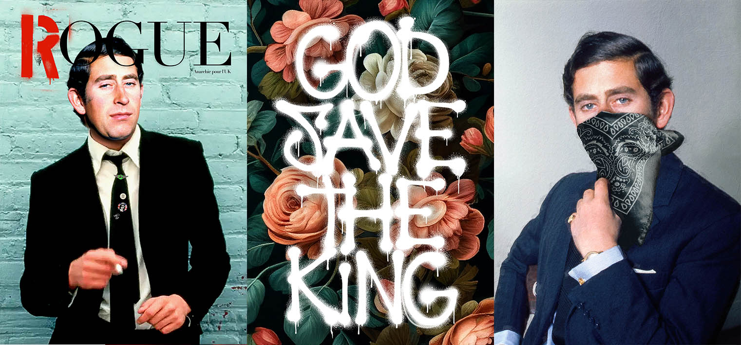KING CHARLES III ROGUE PRINT + GOD SAVE THE KING SPRAY PAINT PRINT +GANG KING PORTRAIT PRINT