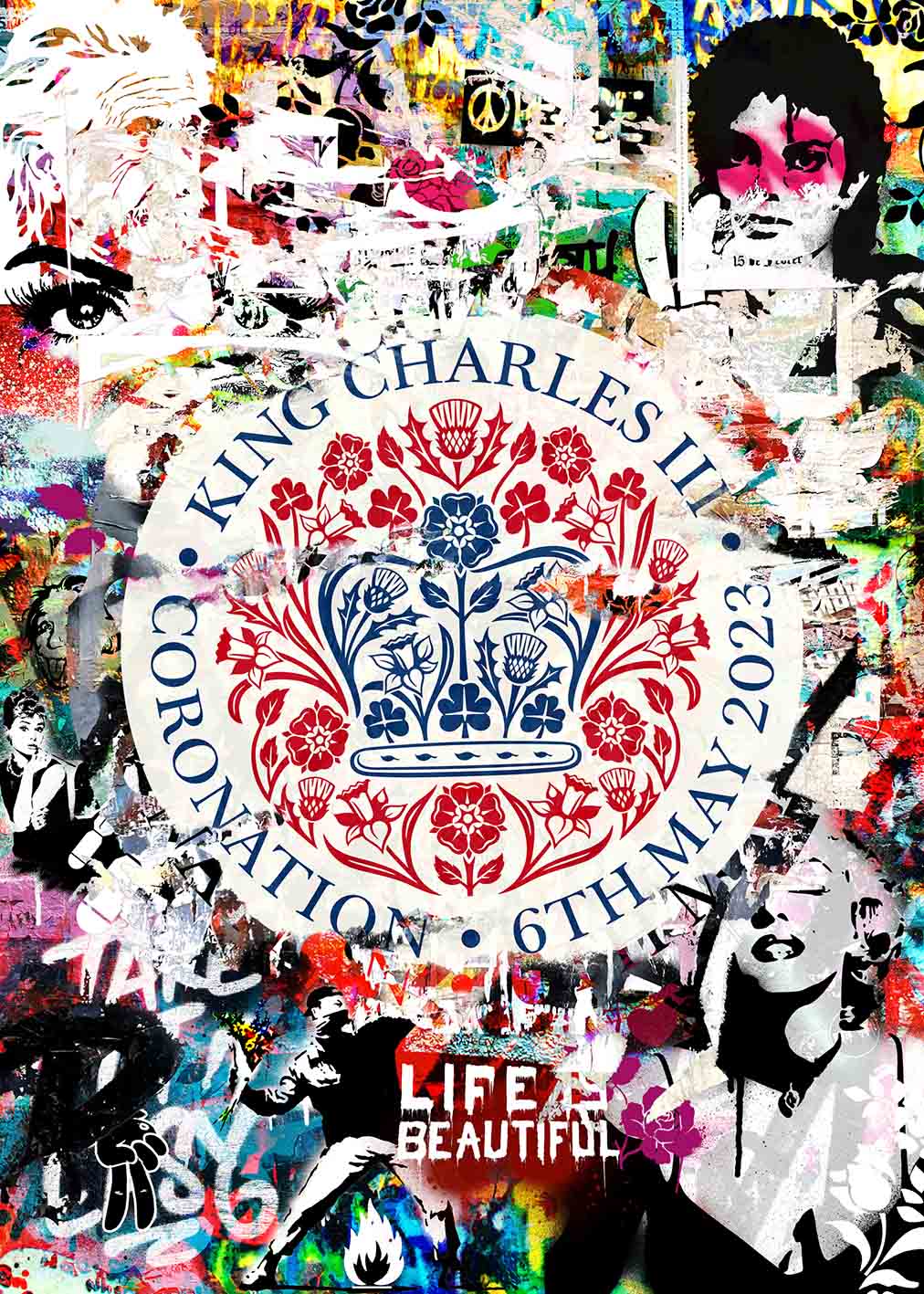 KING CHARLES III EMBLEM GRAFFITI PRINT
