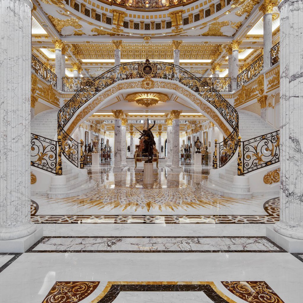 Το Marble Palace ολοκληρώθηκε το 2018 μετά από σχεδόν 12 χρόνια σχολαστικών κατασκευαστικών εργασιών. 70 τεχνίτες είχαν περάσει εννέα μήνες εφαρμόζοντας 700.000 φύλλα χρυσού για να δημιουργήσουν τη διακόσμηση του ακινήτου, η οποία βασίζεται σε ευρωπαϊκά βασιλικά ανάκτορα και κατοικίες.