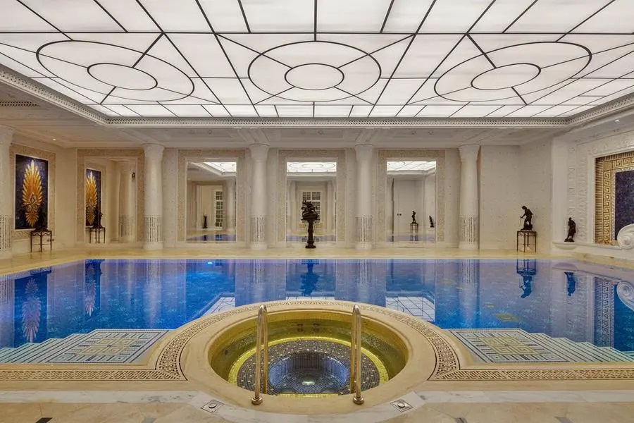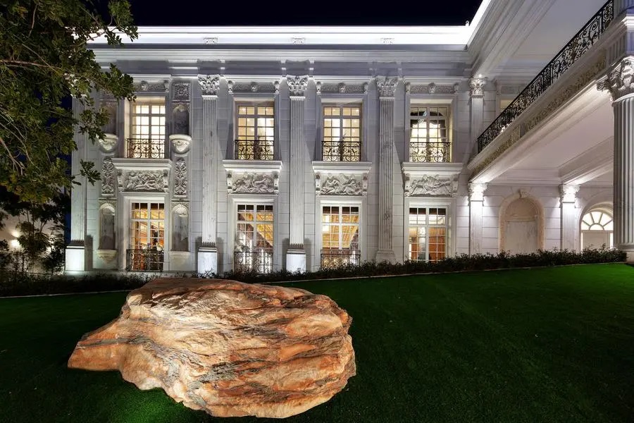 Όπως το Παλάτι των Βερσαλλιών, διαθέτει μαρμάρινες κολώνες, 160 συνολικά, και δύο θόλους οροφής, που φτάνουν σε ύψος τα 14 μέτρα από το ισόγειο. Άλλες πολυτελείς πινελιές περιλαμβάνουν ένα γκαράζ για 16 αυτοκίνητα, μια λίμνη με κυπρίνους koi, εσωτερική πισίνα, ατμόλουτρο, σάουνα και χώρο τεχνο-γυμναστηρίου 2.153 τετραγωνικών μέτρων. Διαθέτει επίσης κελάρι, κήπο με τη δική του λίμνη και περίπτερο και έχει θέα στο εμβληματικό Burj Khalifa.