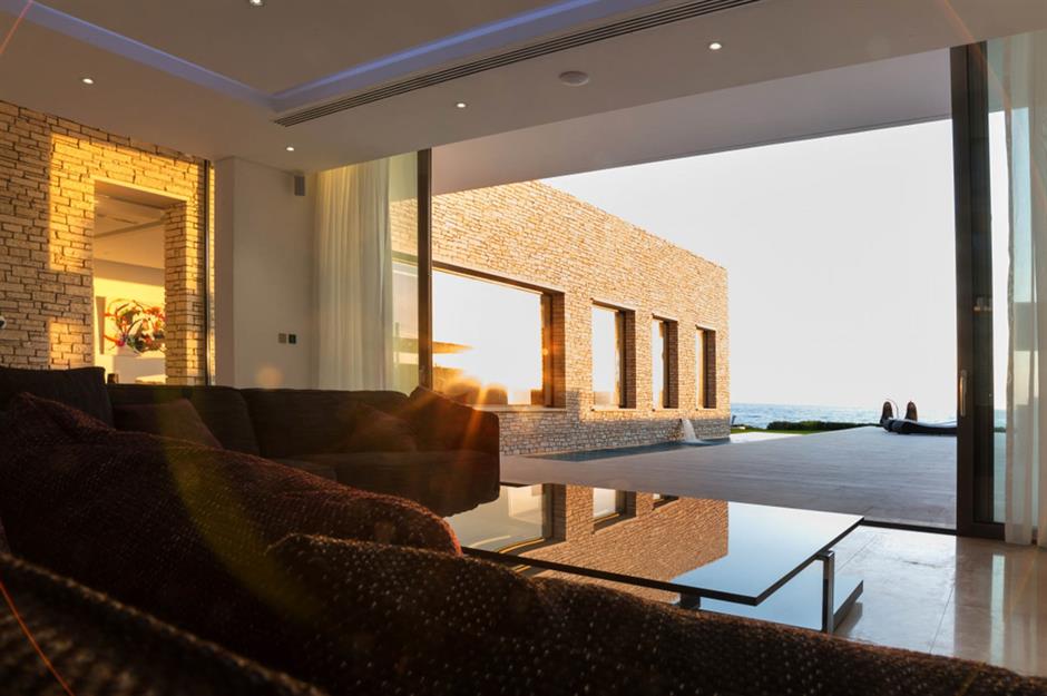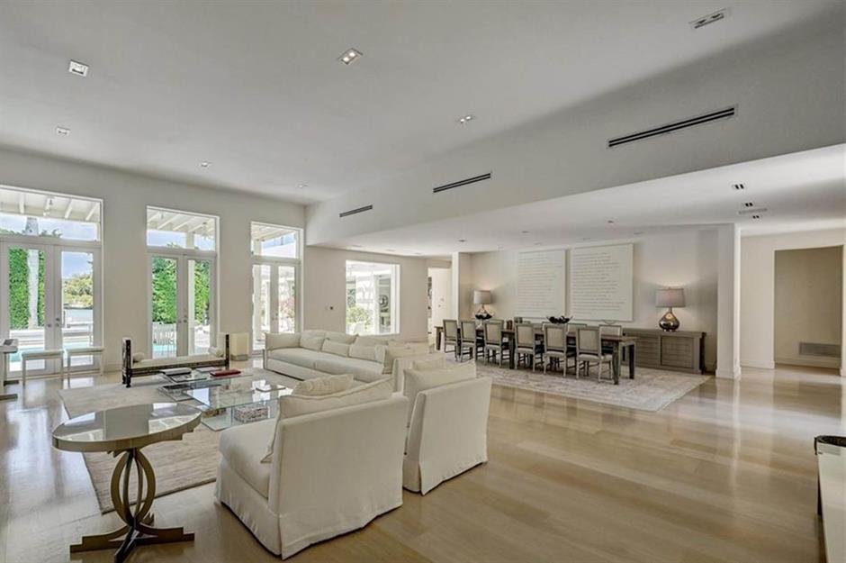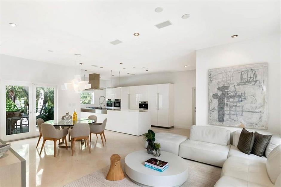 Το ενιαίο σαλόνι και η τραπεζαρία είναι στα λευκά χρώματα, ενώ το τζάκι είναι μινιμαλιστικού στιλ. Η κομψή κουζίνα διαθέτει λευκά ντουλάπια και συσκευές από χάλυβα. Το μεγάλο κεντρικό ‘νησί’ είναι ο τέλειος χώρος εργασία, ενώ τα παράθυρα από το δάπεδο μέχρι την οροφή βλέπουν στο καταπράσινο αίθριο. Στην έπαυλη υπάρχει και χώρος ψυχαγωγίας, διακοσμημένος με υπερσύγχρονο εξοπλισμό ήχου μαζί με ένα ολόλευκο τραπέζι μπιλιάρδου, γραφείο, γυμναστήριο και πισίνα.