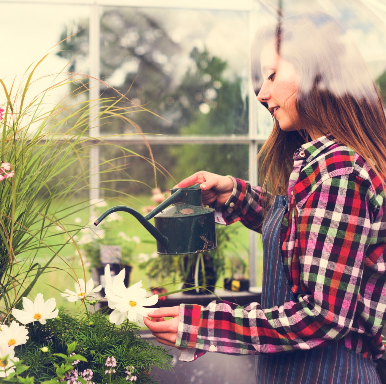 Γυναίκα περιποιείται τα φυτά της