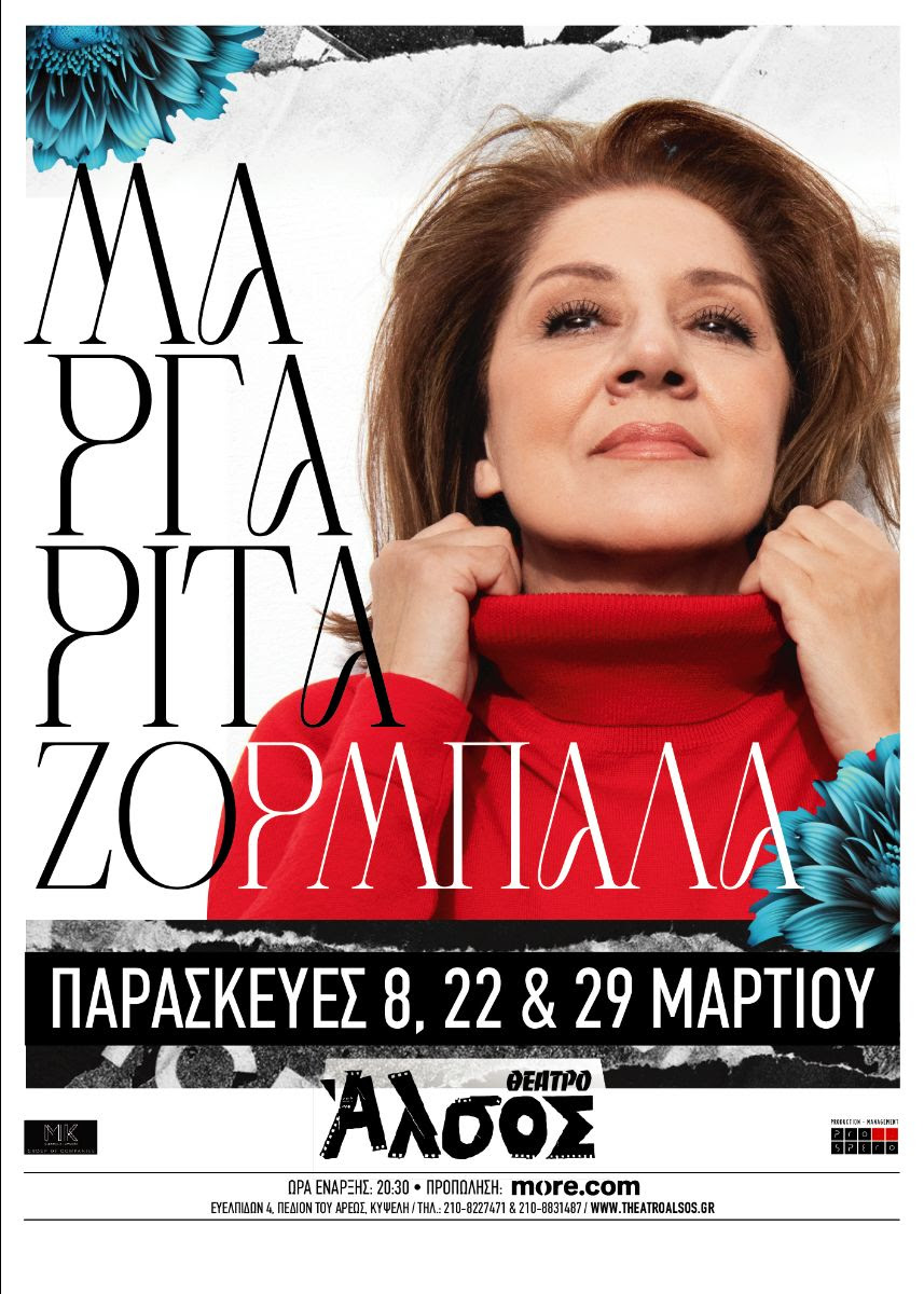Οι παραστάσεις της Μαργαρίτας Ζορμπαλά ανεβαίνουν τις Παρασκευές 8, 22 & 29 Μαρτίου, στο Θέατρο Άλσος. Η προπώληση ξεκίνησε.