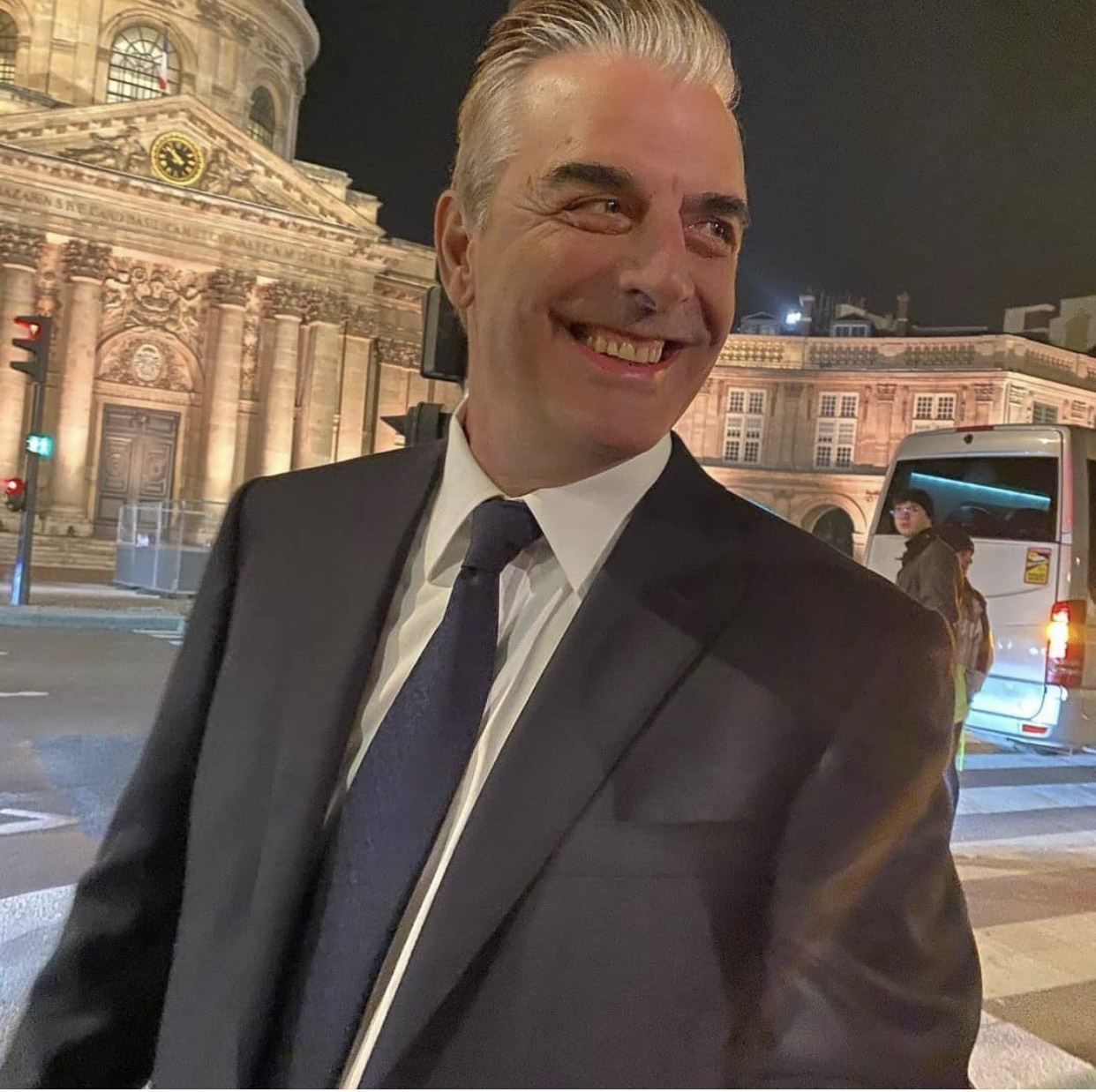 Η αγαπημένη Carrie πιστή στο στιλ της, on and off camera, φόρεσε ένα floral Oscar de la Renta φόρεμα με αρκετό όγκο και γυαλιστερά ψηλοτάκουνα, το οποίο κάλυψε με ένα τεράστιο λευκό, ζεστό puffer όταν η σκηνή τελείωσε. O Mr Big φυσικά, δεν θα μπορούσε να φοράει τίποτα άλλο πέρα από τα κλασικά κουστούμια του.