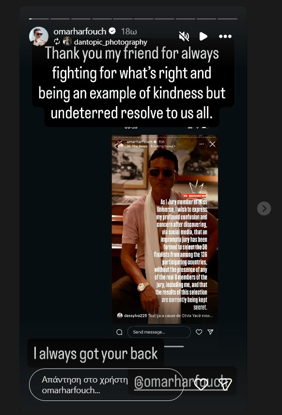 Στις 18 Νοεμβρίου, ο Οργανισμός Μις Υφήλιος δημοσίευσε δημόσια δήλωση στο Instagram, διαψεύδοντας τους ισχυρισμούς του Harfouch.