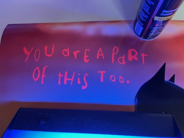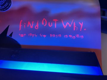 Τα περίεργα σύμβολα του Γρίφου διακρίνονται σε όλη την αφίσα, μαζί με τις φράσεις “είσαι κι εσύ μέρος αυτού” και “μάθε γιατί”, που είναι γραμμένες με κόκκινη γραμματοσειρά και φαίνονται μόνο με μαύρο φως (υπεριώδεις λαμπτήρες).