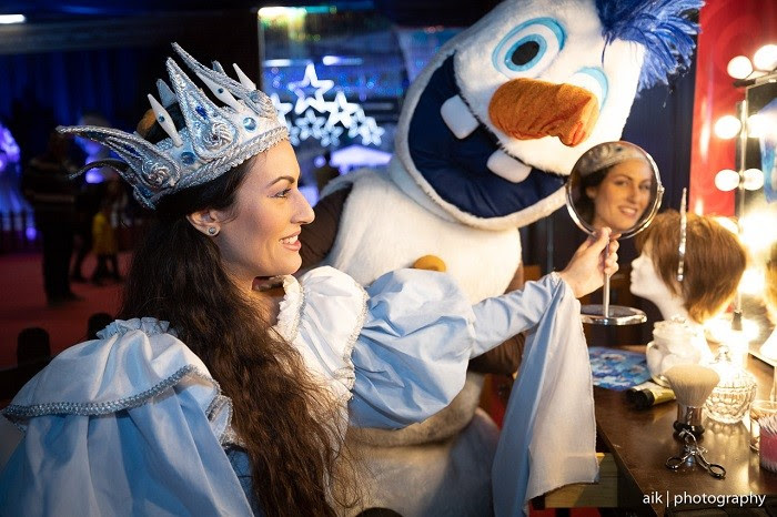 Βρίσκεται όλες τις ώρες στο Santa Claus Kingdom μαζί με τους φίλους του, τους πιο cool ήρωες του Παγωμένου Βασίλειου, την Πριγκίπισσα Amelia, τον Noel το ξωτικό και Kubit τον Τάρανδο, τον κακό μάγο Balthazar, αλλά και τη μάγισα Davina, για να παίζει και να φωτογραφίζεται με τα παιδιά!