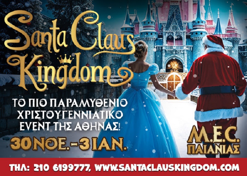 Το Santa Claus Kingdom άνοιξε για 13η χρονιά τις πύλες του στις 30 Νοεμβρίου στο M.E.C. Παιανίας για να μεταμορφώσει την καθημερινότητα σε ένα ονειρικό χριστουγεννιάτικο παραμύθι! Tο Santa Claus Kingdom, το μεγαλύτερο Χριστουγεννιάτικο Πάρκο της Αθήνας, προσφέρει μια μοναδική εμπειρία γεμάτη μαγικά σκηνικά, ειδικά σχεδιασμένες δραστηριότητες και λαμπερές εκπλήξεις για όλες τις ηλικίες. Κάθε γωνιά του πάρκου είναι διακοσμημένη με προσοχή στη λεπτομέρεια, δημιουργώντας μια φαντασμαγορική ατμόσφαιρα που αποπνέει το αληθινό πνεύμα των Χριστουγέννων.