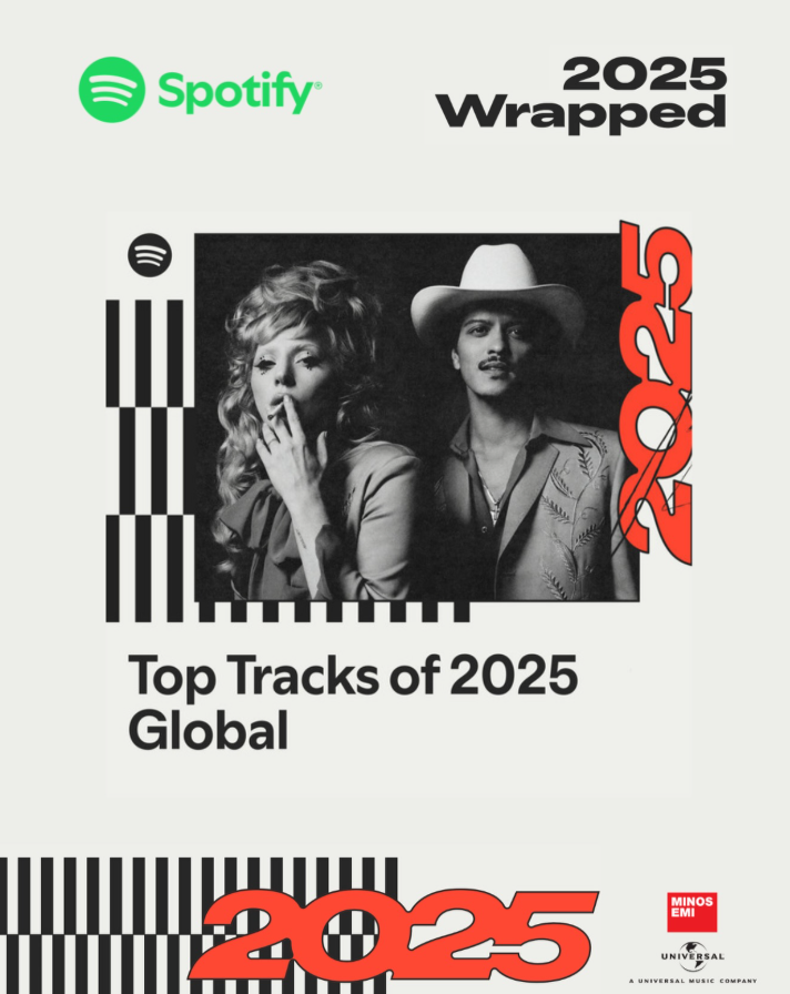 Το κορυφαίο τραγούδι παγκοσμίως για το 2025 κυκλοφόρησε στην πραγματικότητα το 2024 και δεν είναι άλλο από την τεράστια επιτυχία των Lady Gaga και Bruno Mars, «Die With a Smile», το οποίο συγκέντρωσε περισσότερα από 1,7 δισεκατομμύρια streams μόνο το 2025. Είχε προηγουμένως σπάσει το ρεκόρ ως το ταχύτερο τραγούδι που έφτασε το 1 δισ. streams στην πλατφόρμα.