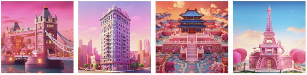 Βλέποντας όλα αυτά τα αποτελέσματα, το ConservatoryLand χρησιμοποιώντας το εργαλείο AI Midjourney, αποφάσισε να ‘επανασχεδιάσει’ μερικά από τα πιο εμβληματικά κτίρια και ορόσημα του κόσμου σε ένα Barbie DreamHouse και τουλάχιστον για εμάς πιστεύουμε πως τα κατάφερε!