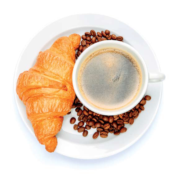 Ένα παραδοσιακό γαλλικό πρωινό αποτελείται από καφέ και μπαγκέτα ή κρουασάν. Όπως οι Κουβανοί, οι Γάλλοι βυθίζουν συχνά το ψητό, βουτυρωμένο ψωμί τους μέσα στον καφέ.