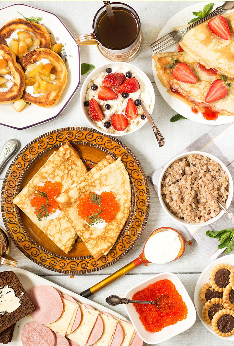 Οι τηγανίτες είναι τεράστιες στη Ρωσία. Υπάρχουν τα γεμάτα τυρί syrniki, τα blini -μοιάζουν με κρέπες- φτιαγμένα με κεφίρ και αφράτα oladi, περίπου σε μέγεθος μπισκότου.
