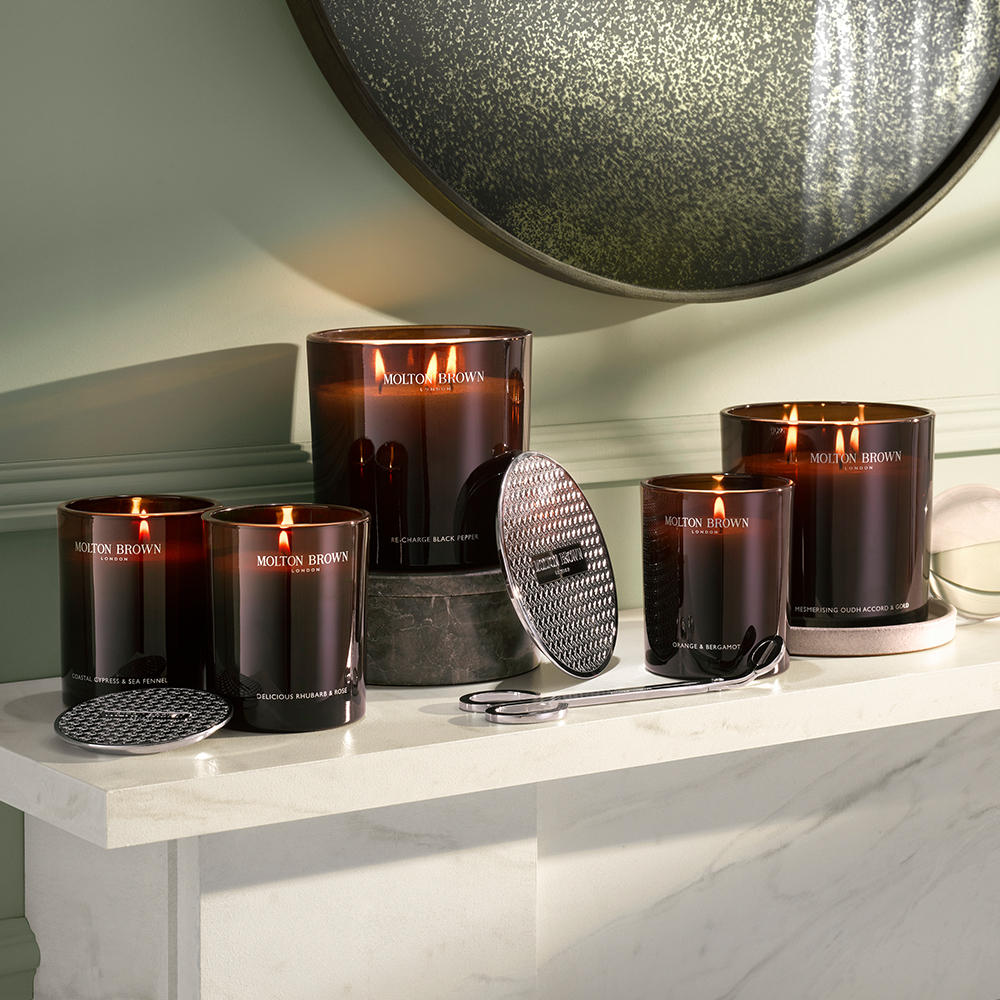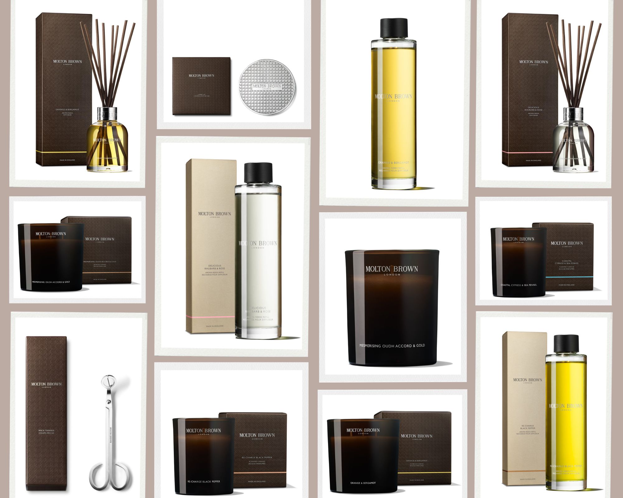 Η νέα Home Collection περιλαμβάνει αρωματικά κεριά και αξεσουάρ κεριών, καθώς και Aroma Reeds και Aroma Reed Refills και αποτελεί το απόσταγμα της εμπειρίας του εμβληματικού brand στη δημιουργία αρωμάτων (πάνω από 50 χρόνια). Η νέα συλλογή περιλαμβάνει ξεχωριστά αρωματικά αντικείμενα που δημιουργήθηκαν με βάση τόσο την κομψότητα, όσο και την εμπειρία του brand. Τα αρωματικά κεριά όπως και τα αρωματικά χώρου έχουν επανασχεδιαστεί με σκοπό να αναβαθμίσουν τη μέχρι τώρα αρωματική εμπειρία. Για τη συλλογή, η Molton Brown βασίστηκε στα πιο αγαπημένα αρώματά της, που μπορούν να μας αναζωογονήσουν ή να μας χαλαρώσουν.