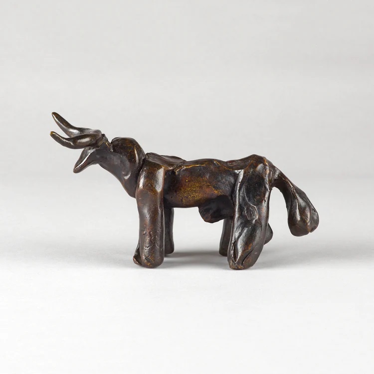 Λίγα μοτίβα στον κανόνα του Πικάσο είναι τόσο φορτισμένα και αισθησιακά όσο ο ταύρος. Ένα ισχυρό και διαρκώς εξελισσόμενο σύμβολο, του παρείχε μια πλατφόρμα για να συνθέσει την κλασική μυθολογία και την ισπανική του κληρονομιά. Εμφανιζόμενος σε όλο το έργο του, ο ταύρος ενσάρκωνε τη δύναμη, την αρρενωπότητα και την ένταση μεταξύ ομορφιάς και βιαιότητας. Αυτός ο χάλκινος ταύρος Taureau (1957) χυτεύτηκε σε έκδοση δύο τεμαχίων. Μέσα από τη διαμόρφωση και την επεξεργασία της αρχικής πρώτης ύλης, ο Πικάσο παίζει με την έννοια του ζώου, αφηρημένα μέχρι τα χαρακτηριστικά του ταύρου να περιοριστούν στις απλουστευμένες μορφές τους. Μειώνοντας το ζώο στον πυρήνα του, ο Πικάσο αποστάζει τον μύθο, την ιστορία και την ταυτότητα στο δικό του μοναδικό, διαχρονικό έμβλημα.