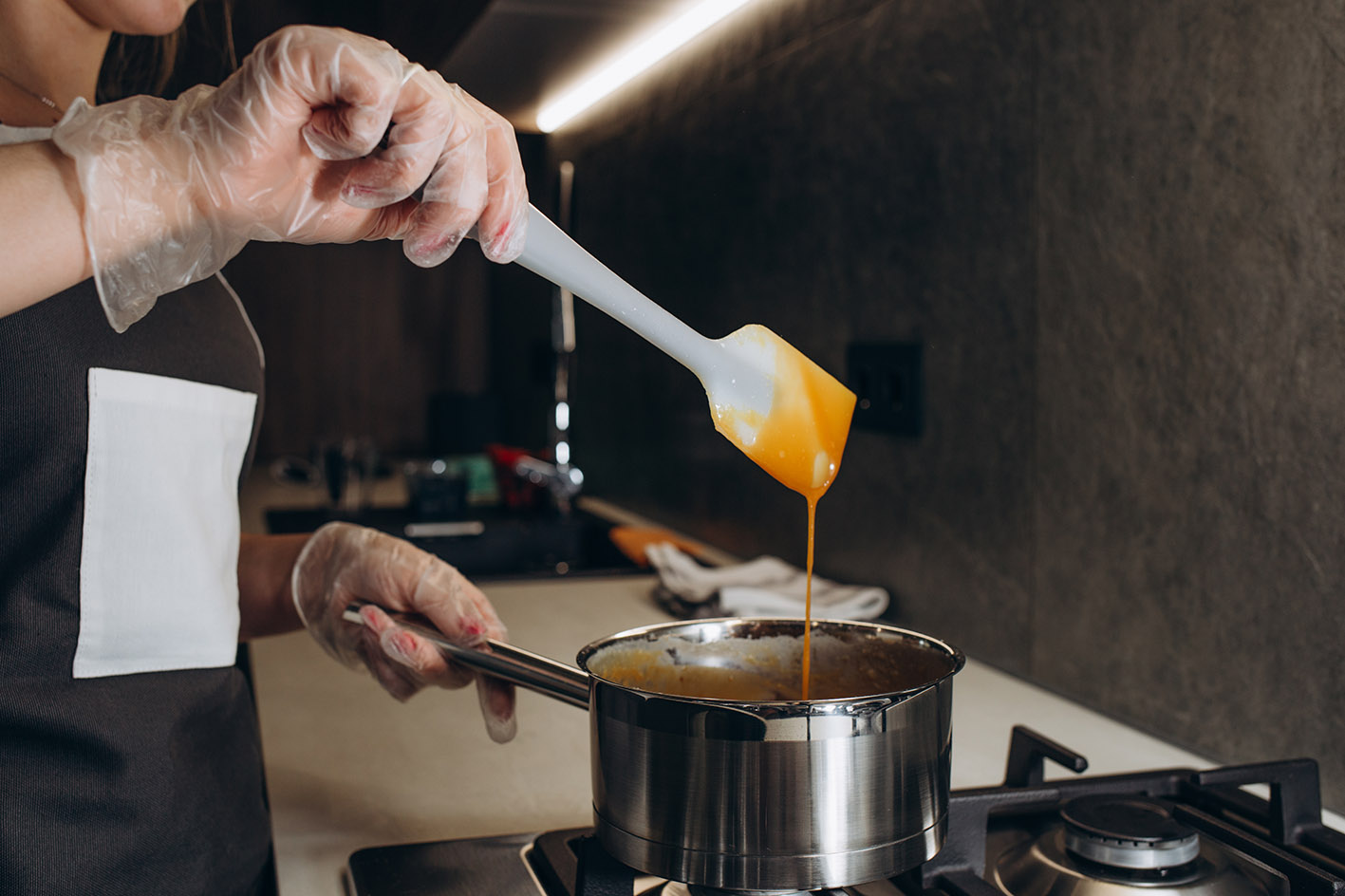 • Απλώνουμε την κρέμα πάνω στη βάση και λειαίνουμε την επιφάνεια.