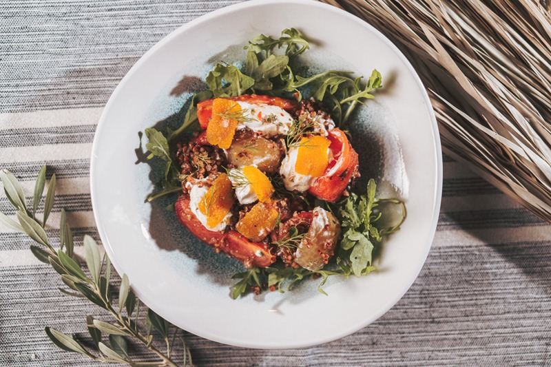 Σ’ αυτό, το μεγαλύτερο μερίδιο κρατούν τα ορεκτικά και οι μεζέδες, με τη σαντορινιά φάβα να σερβίρεται με ψητά κρεμμύδια και ντοματίνια τσέρι, την καπνιστή μελιτζανοσαλάτα να γαρνίρεται με τσιπς μελιτζάνας, τον πουρέ από ρεβίθια να παντρεύεται με ψητές γαρίδες, τη χωριάτικη να περιλαμβάνει βαρελίσια φέτα, τον μαρινάτο γαύρο να σερβίρεται πάνω σε προζυμένιο ψωμί με πατέ ελιάς Καλαμών, το τηγανητό καλαμάρι να συνοδεύεται από αγιολί και το λιαστό χταπόδι να αρωματίζεται με ελληνικά βότανα.