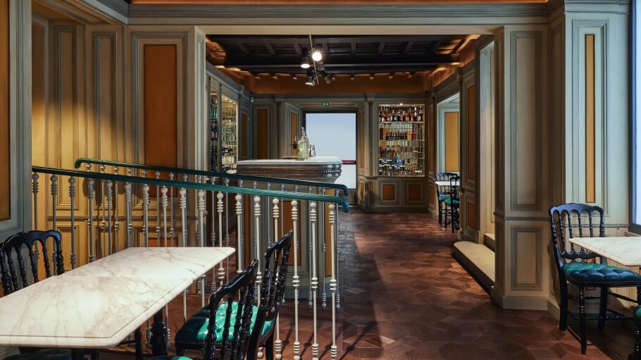 Με τη μαρμάρινη μπάρα, τους τιρκουάζ καναπέδες και μια ατμόσφαιρα που παραπέμπει σε μείξη bottega της Τοσκάνης και παρισινού μπιστρό, θα μπορεί να φιλοξενήσει 14 άτομα για πρωινό (ιταλικές σπεσιαλιτέ και δημιουργίες εμπνευσμένες από την Ιαπωνία και το Μεξικό), καφέ, ποτό ή ένα από τα κοκτέιλ της mixologist Martina Bonci.