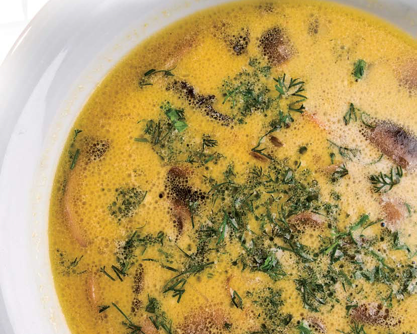 • Οταν σοταριστούν καλά, ρίχνουμε το αλεύρι και παράλληλα προσθέτουμε λίγο λίγο τον ζωμό, ανακατεύοντας για να μη σβολιάσει. Αν θέλουμε τη σούπα μας πιο «βελουτέ» βάζουμε περισσότερο αλεύρι.