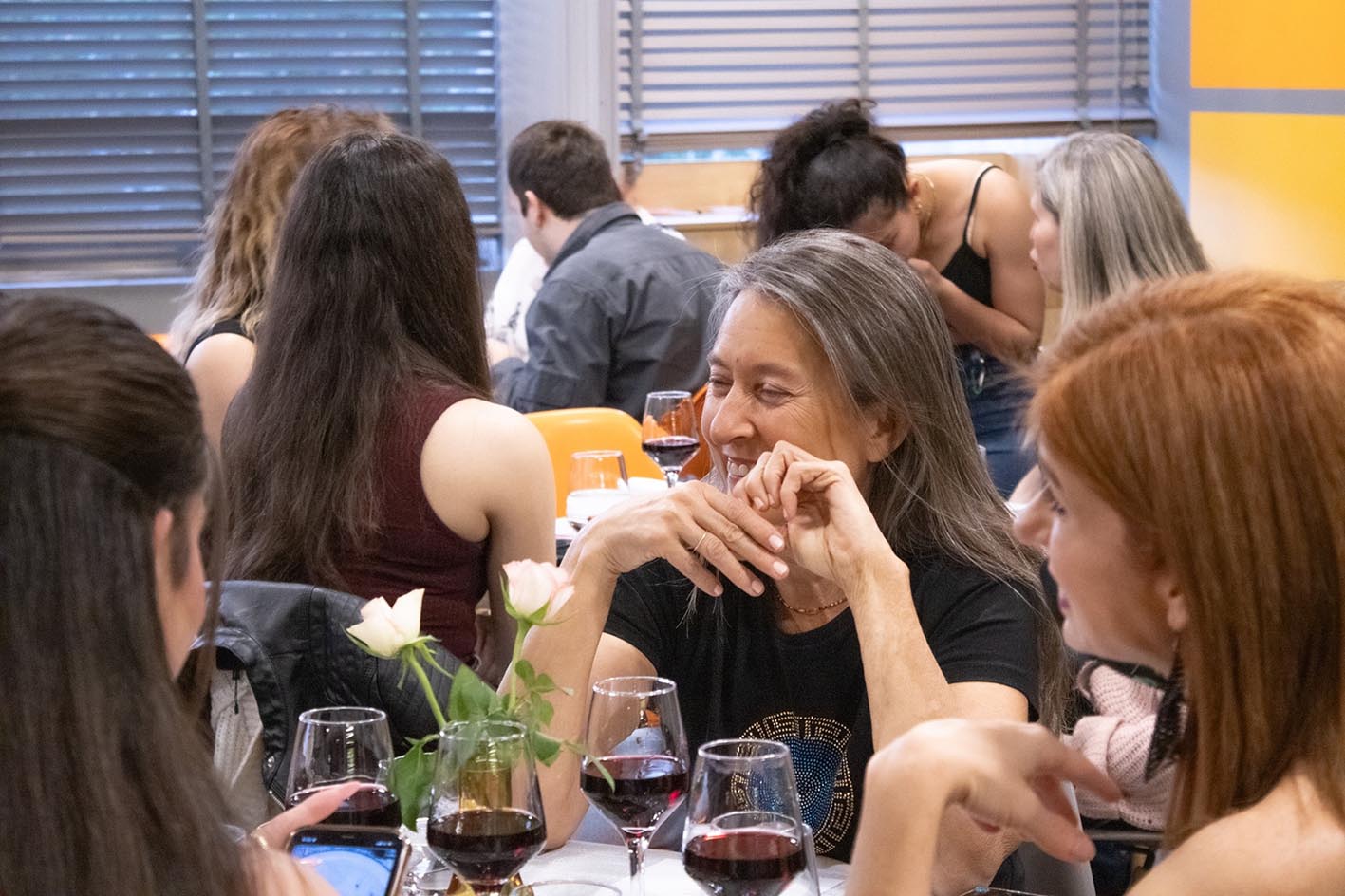 Ανάμεσα στις πιο όμορφες εικόνες της βραδιάς, ξεχώρισε η περίπτωση μίας σπουδάστριας, η οποία ήρθε συνοδευόμενη όχι μόνο από τη μητέρα της, που την παροτρύνει να κατακτήσει τους επαγγελματικούς της στόχους, αλλά και από τα δύο παιδιά της, ώστε να γιορτάσουν όλοι μαζί.