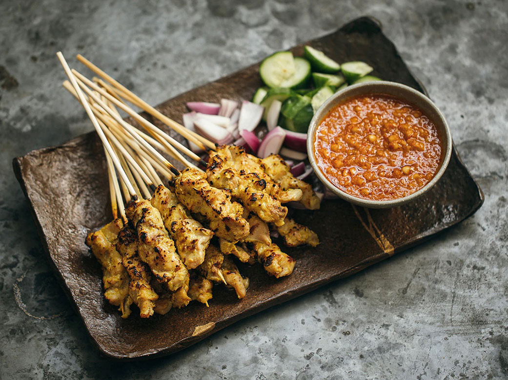Επίσης, δημοφιλή είναι τα satays, τα κλασικά σουβλάκια, ξαδέλφια των κεμπάπ που έφεραν μαζί τους ως γαστρονομική επιρροή οι έμποροι από την Ινδία και τη Μέση Ανατολή και εμπλουτίστηκαν με τοπικά προϊόντα όπως η σόγια και το τζίντζερ και, κυρίως, με τοπικά μπαχαρικά.