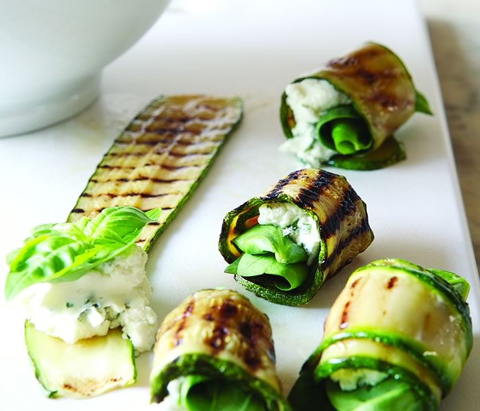 Ψητά κολοκυθάκια ρολάκια με ανθότυρο. Credit: www.elliekrieger.com