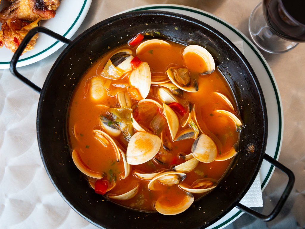 à la Marinera (α λα-μαρινέρα) – Κοινό στιλ μαγειρέματος στην ισπανική κουζίνα, αναφέρει ότι το φαγητό μαγειρεύεται με λευκό κρασί, κρεμμύδια και μερικές φορές ντομάτες.