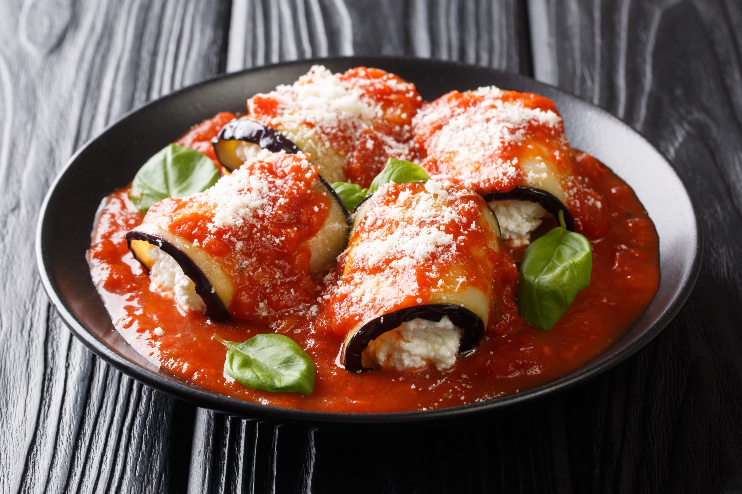Γεμιστά ρολάκια μελιτζάνας με φέτα και ρικότα