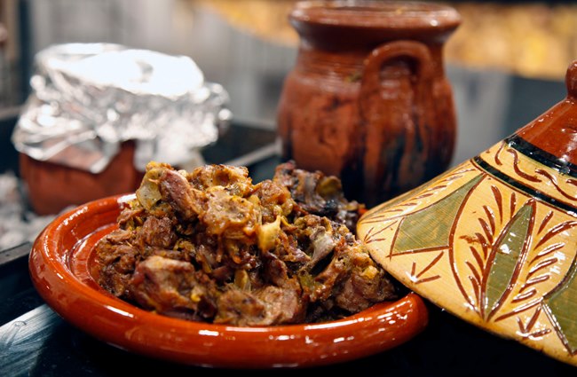 Το εθνικό πιάτο, το πανάρχαιο ταζίν, σιγομαγειρεύεται στο ομώνυμο πήλινο σκεύος και σερβίρεται με ψωμί khobz που αντικαθιστά τα μαχαιροπίρουνα.