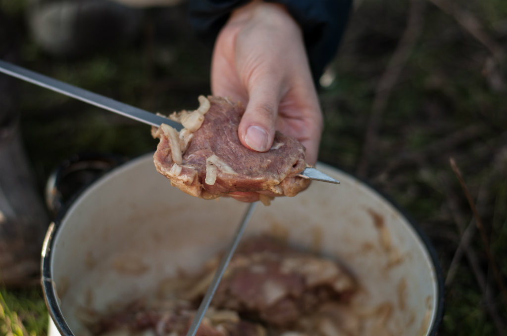 Το μαρινάρισμα πρέπει απαραίτητα να περιέχει κρασί, χυμό λεμονιού, ξύδι, ντομάτα και κρεμμύδια γιατί τα υλικά αυτά μαλακώνουν τις ίνες του κρέατος.
