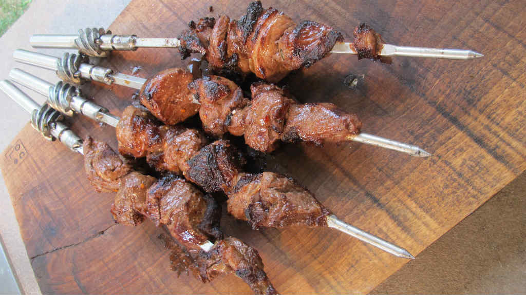 Τα κομμάτια στη σούβλα πρέπει να περαστούν ομοιόμορφα, σφιχτά, όχι πολύ πιεσμένα, ώστε να γυρίζουν καθ όλη τη διάρκεια του ψησίματος χωρίς να ‘κρεμάνε’.
