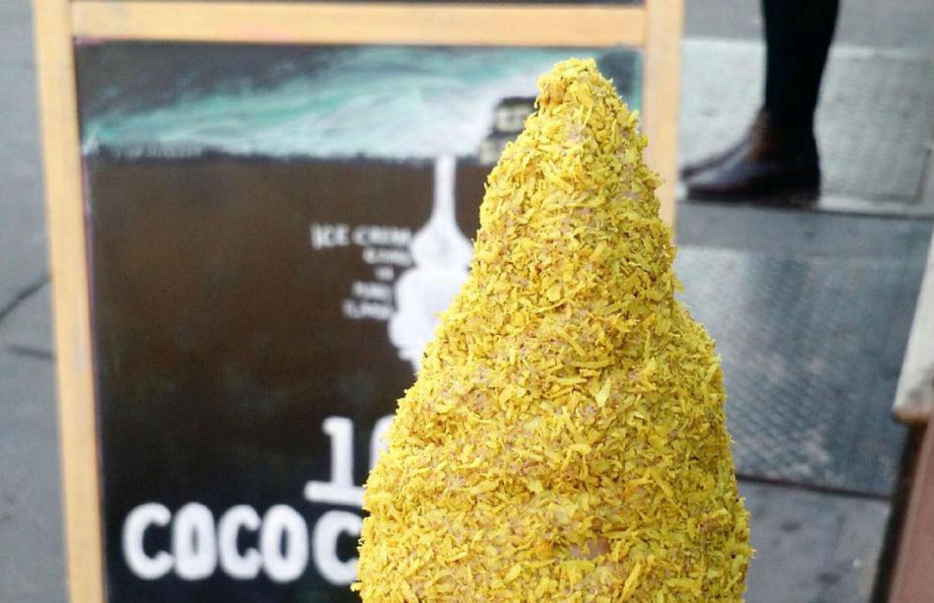 Αν δεν είστε λάτρεις της τρούφας, μην ανησυχείτε, το κατάστημα σας δίνει την επιλογή να βυθίσετε το παγωτό σας σε λίγη καρύδα με κάρυ. Και, απλά, δείτε πόσο απαλό και αφράτο φαίνεται.