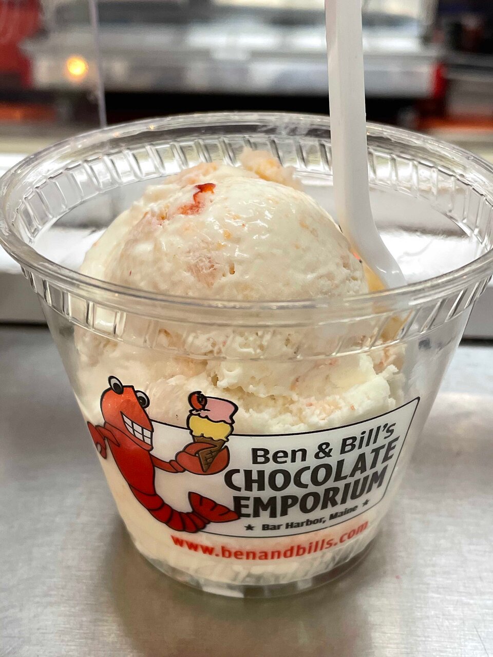 Το «Ben & Bill’s Chocolate Emporium» έχει γίνει περισσότερο διάσημο για το παγωτό του με γεύση αστακού. Ναι, καλά διαβάσατε. Αυτό το παραθαλάσσιο κατάστημα στο Bar Harbor του Μέιν σερβίρει μπάλες που περιλαμβάνουν μια από τις αγαπημένες λιχουδιές της Νέας Αγγλίας: πραγματικά κομμάτια μαγειρεμένης και βουτυρωμένης σάρκας αστακού ανακατεύονται σε παγωτό με γεύση βουτύρου – μια δημιουργία που λέγεται πως έγινε για να αποδειχθεί σε έναν πελάτη ότι όλες οι επιλογές του καταλόγου είναι σπιτικές.