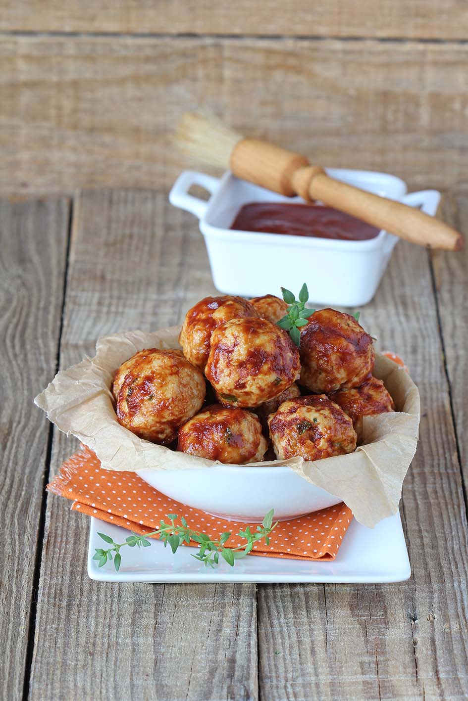 • Με ένα πινέλο περνάμε κάθε κεφτεδάκι με σάλτσα μπάρμπεκιου και τα ψήνουμε σε καλά προθερμασμένο φούρνο στους 200οC για 15 λεπτά.
