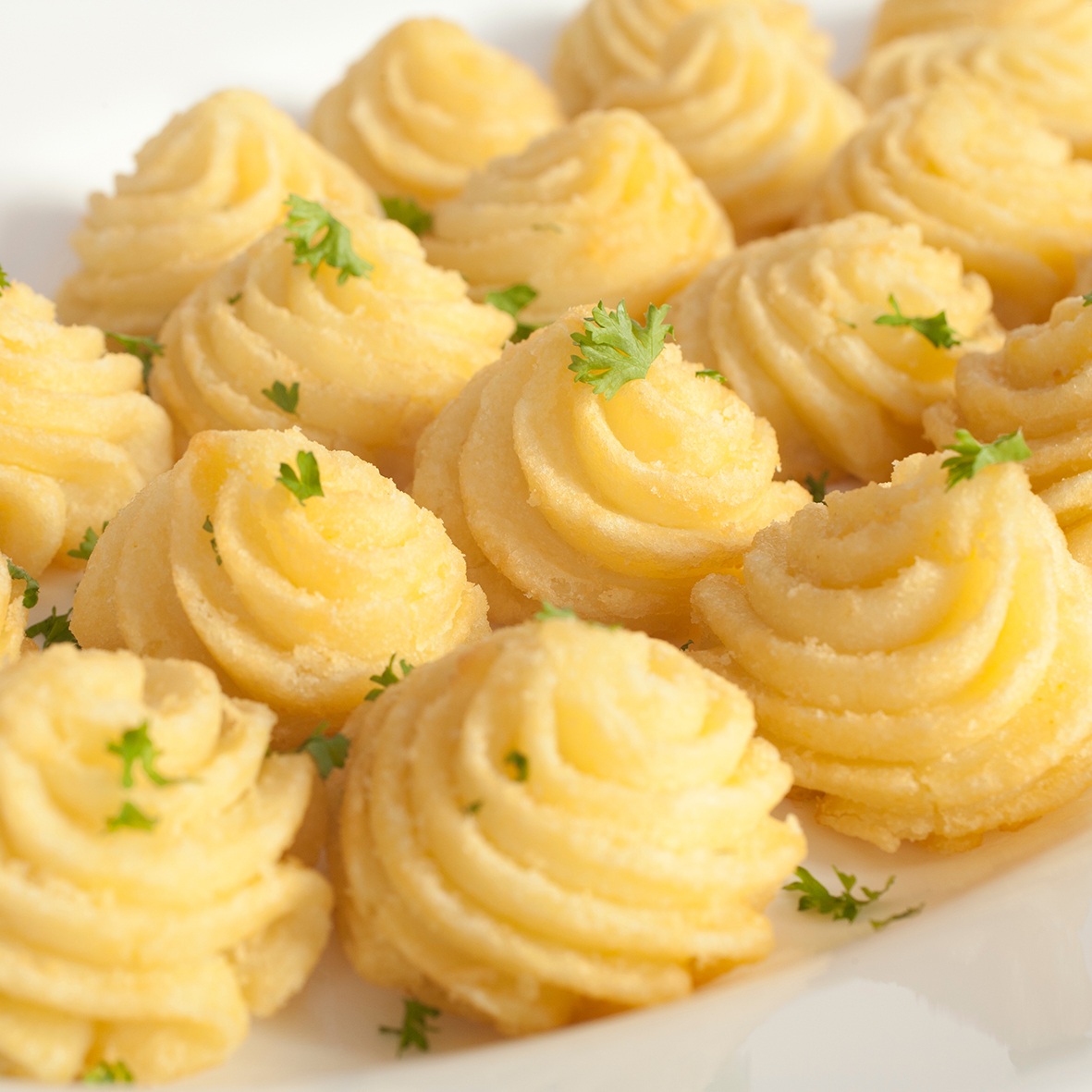 Αυτά τα αλμυρά γαλλικά swirls φέρνουν μια αριστοκρατική ανατροπή στον πουρέ πατάτας, μετατρέποντάς τον σε posh είδος υψηλής γαστρονομίας. Η ακριβής προέλευση του καλαίσθητου πιάτου είναι άγνωστη. Ωστόσο, πιστεύεται ότι οι πατάτες ντουσέζ δημιουργήθηκαν για μια Βρετανίδα δούκισσα που επισκέφτηκε τη Γαλλία.