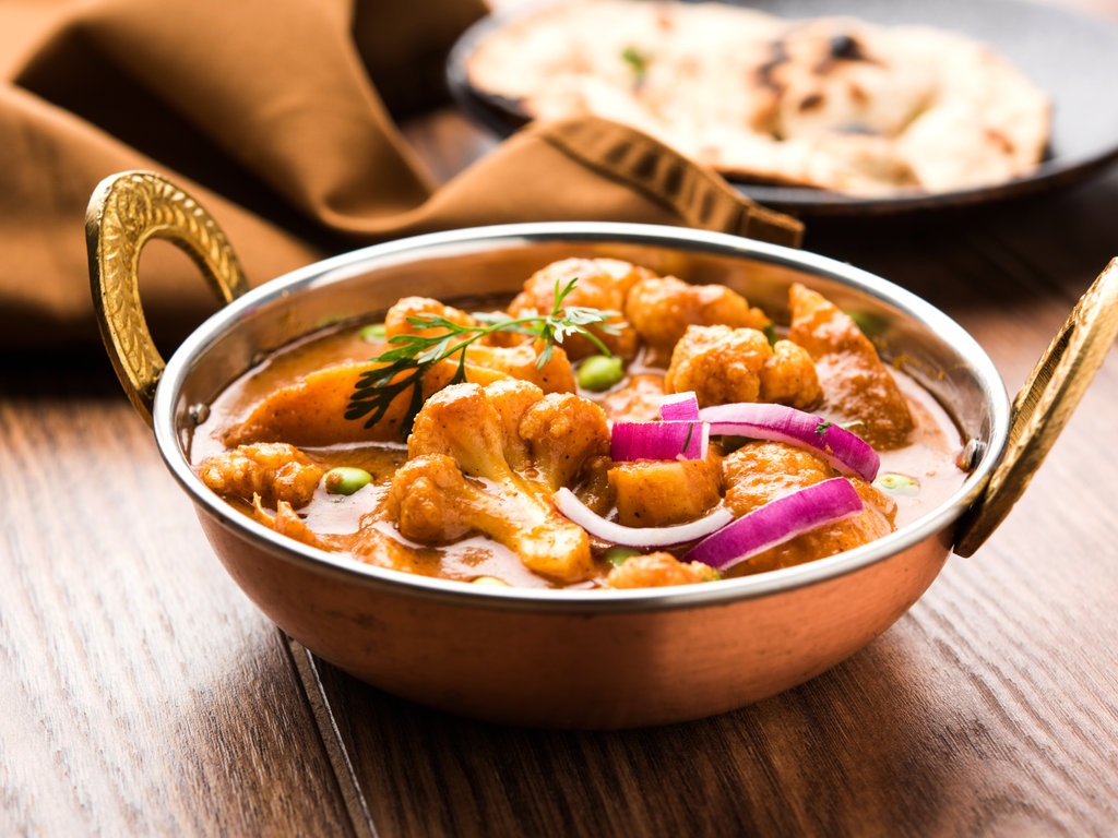 Τα πιτάκια samosas είναι από τους καλύτερους τρόπους για να απολαύσει κανείς τις πατάτες στην Ινδία, αλλά το aloo gobi, ένα κλασικό μαγειρευτό πιάτο με ιδιαίτερα καρυκεύματα, είναι επίσης κορυφαίο. Οι πατάτες ενώνουν τις δυνάμεις τους με το κουνουπίδι και τον αρακά για ένα υπέροχο χορτοφαγικό δείπνο. Σερβίρεται με ρύζι, νάαν ή ρότι και πικάντικη σάλτσα ραΐτα, αν θέλετε.