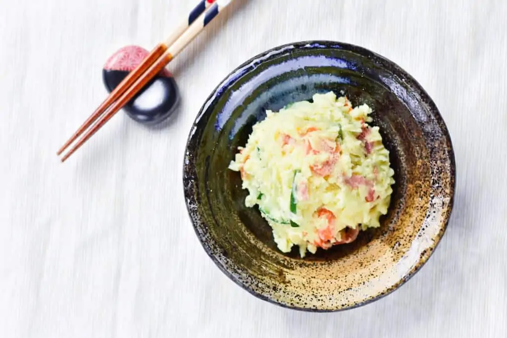 Την έχουμε συνηθίσει με ελαιόλαδο και λεμόνι/ξίδι ή με μαγιονέζα. Αν αντικαταστήσετε την κλασική με την ιαπωνικού τύπου μαγιονέζα (kewpie) και επιλέξετε μισοπολτοποιημένη αντί για βραστή πατάτα, τότε έχετε σχεδόν φτιάξει μια νόστιμη ιαπωνική πατατοσαλάτα.