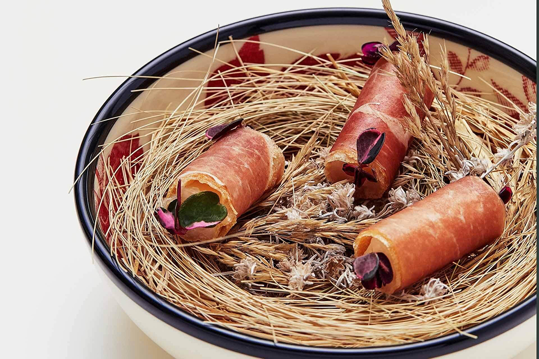 Στα πιάτα περιλαμβάνονται signature δημιουργίες του Massimo Bottura, όπως το Emilia burger, αλλά και δημιουργίες με ιταλική ή κορεατική έμπνευση, όπως το πιάτο ζυμαρικών «Τοπίο της Προσίντα» ή η σαλάτα «Κήπος της Σεούλ», ή που δένουν προϊόντα των δύο χωρών, όπως το ορεκτικό με κορεατικό πεπόνι και προσούτο.