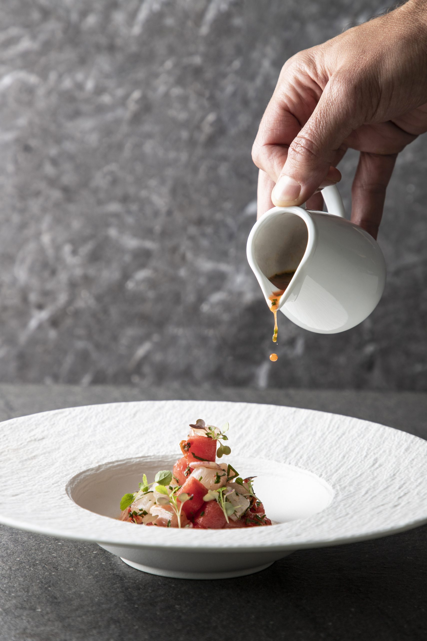 Φρέσκα θαλασσινά από το Αιγαίο, τυριά από Έλληνες εκλεκτούς παραγωγούς, λαχανικά από μποστάνια των Κυκλάδων, η φημισμένη παραδοσιακή φάβα της Σαντορίνης είναι μερικές μόνο από τις πρώτες ύλες που χρησιμοποιούνται σε συνδυασμό με πολλά ακόμα ΠΟΠ προϊόντα.