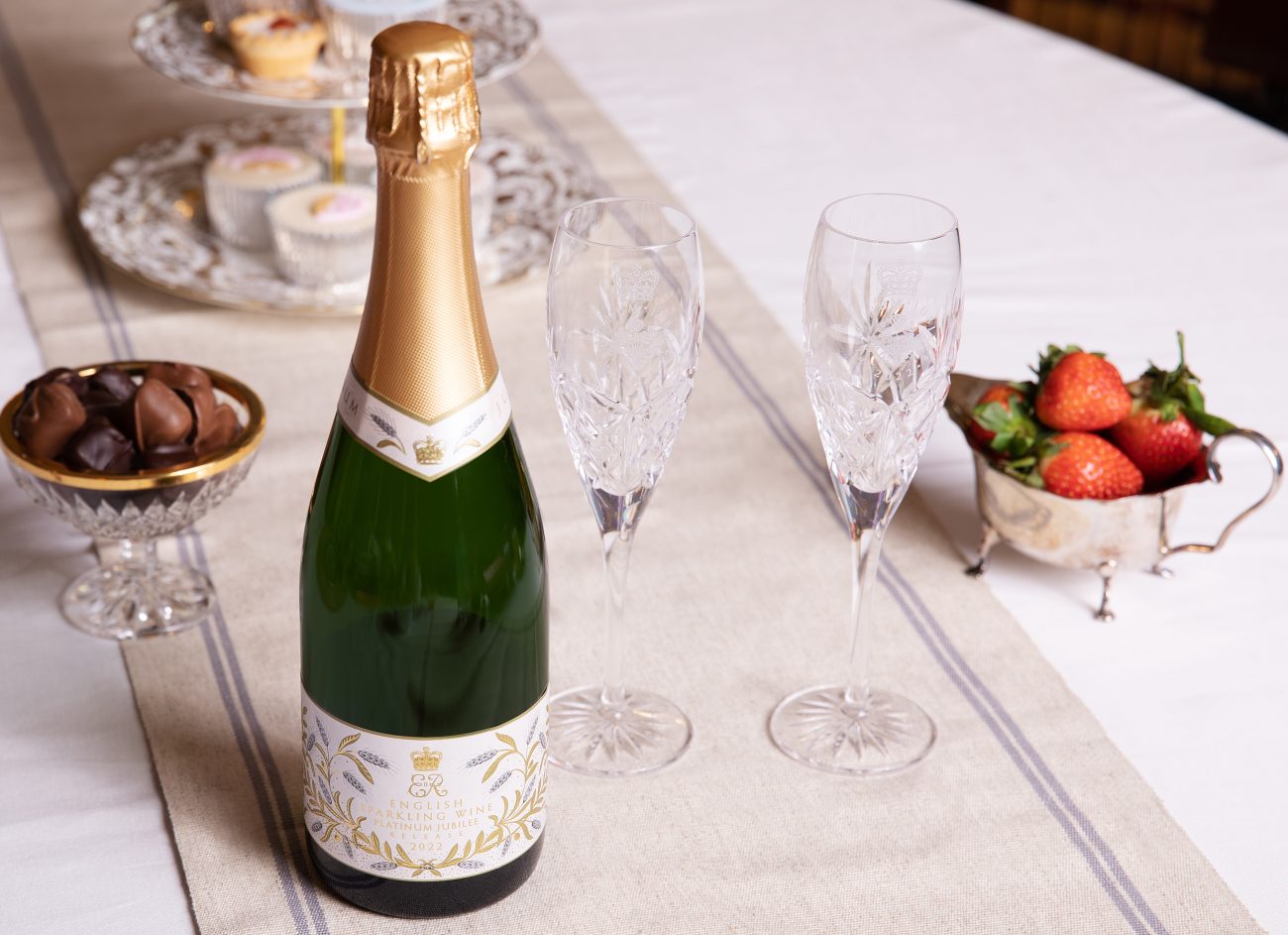 Πρόκειται για το Platinum Jubilee English Sparkling Wine, μια μείξη Chardonnay, Pinot Noir και Pinot Meunier από αμπελώνες του Κent και του δυτικού Sussex, με ετικέτα εμπνευσμένη από το χρυσό κέντημα του ενδύματος που φορούσε η Ελισάβετ κατά τη στέψη της.